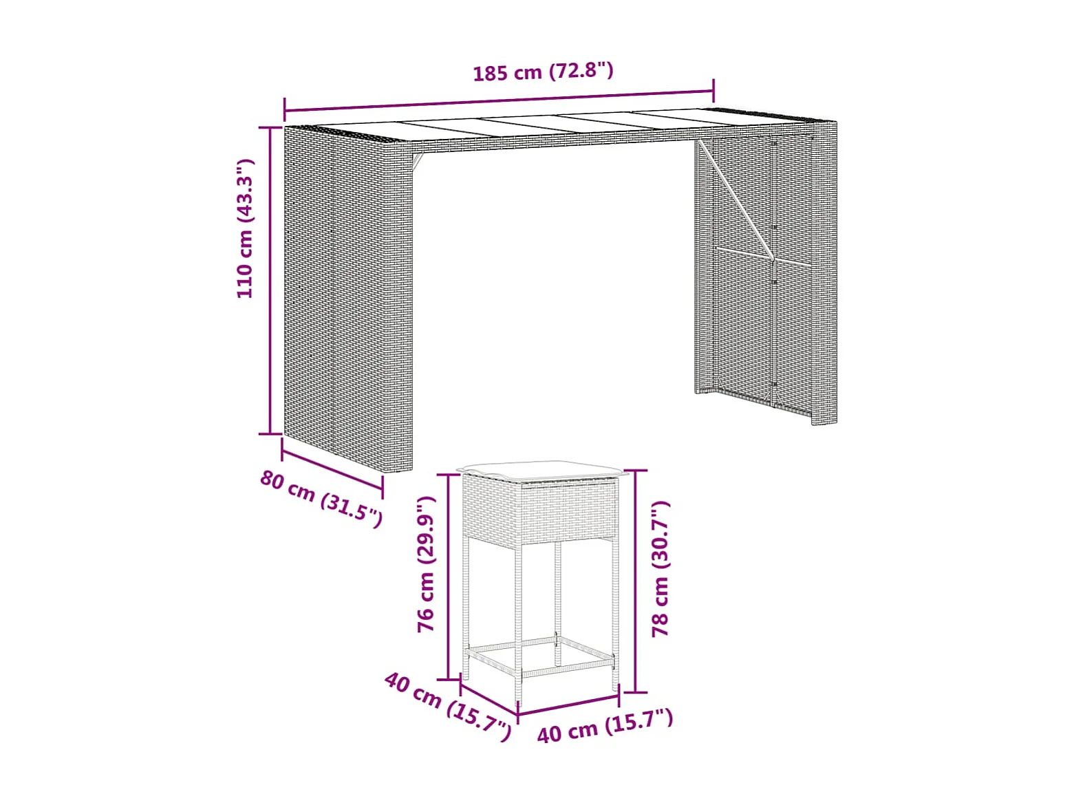 9-tlg. Gartenbar-Set mit Kissen Grau Poly Rattan