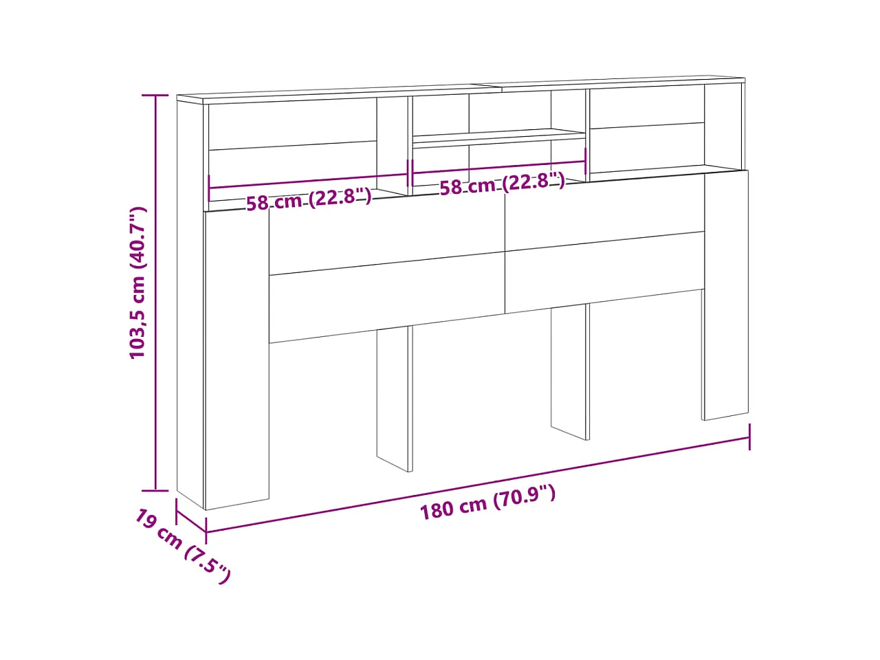 Sonoma Eiche Kopfteilschrank 180x19x103,5 cm