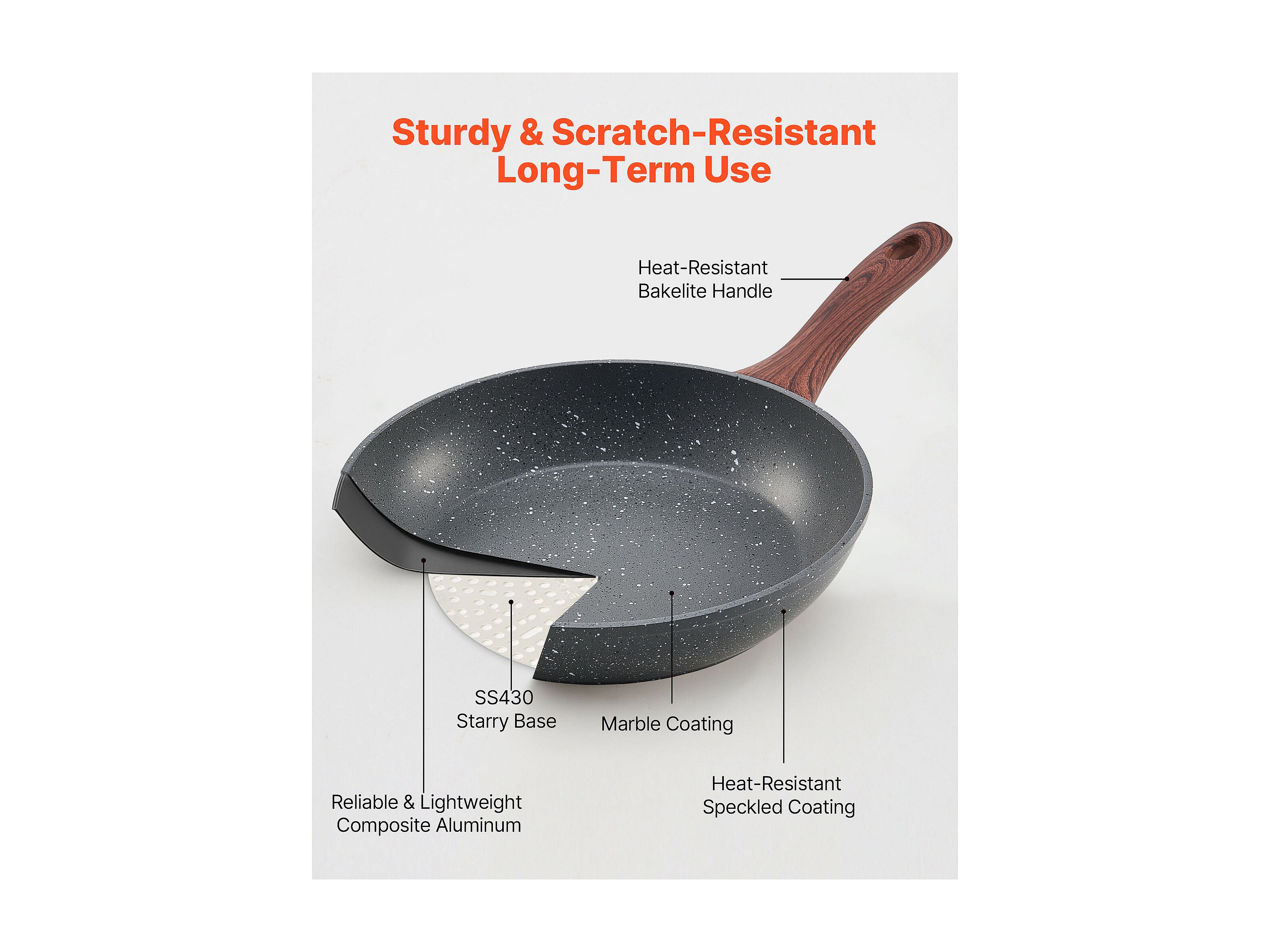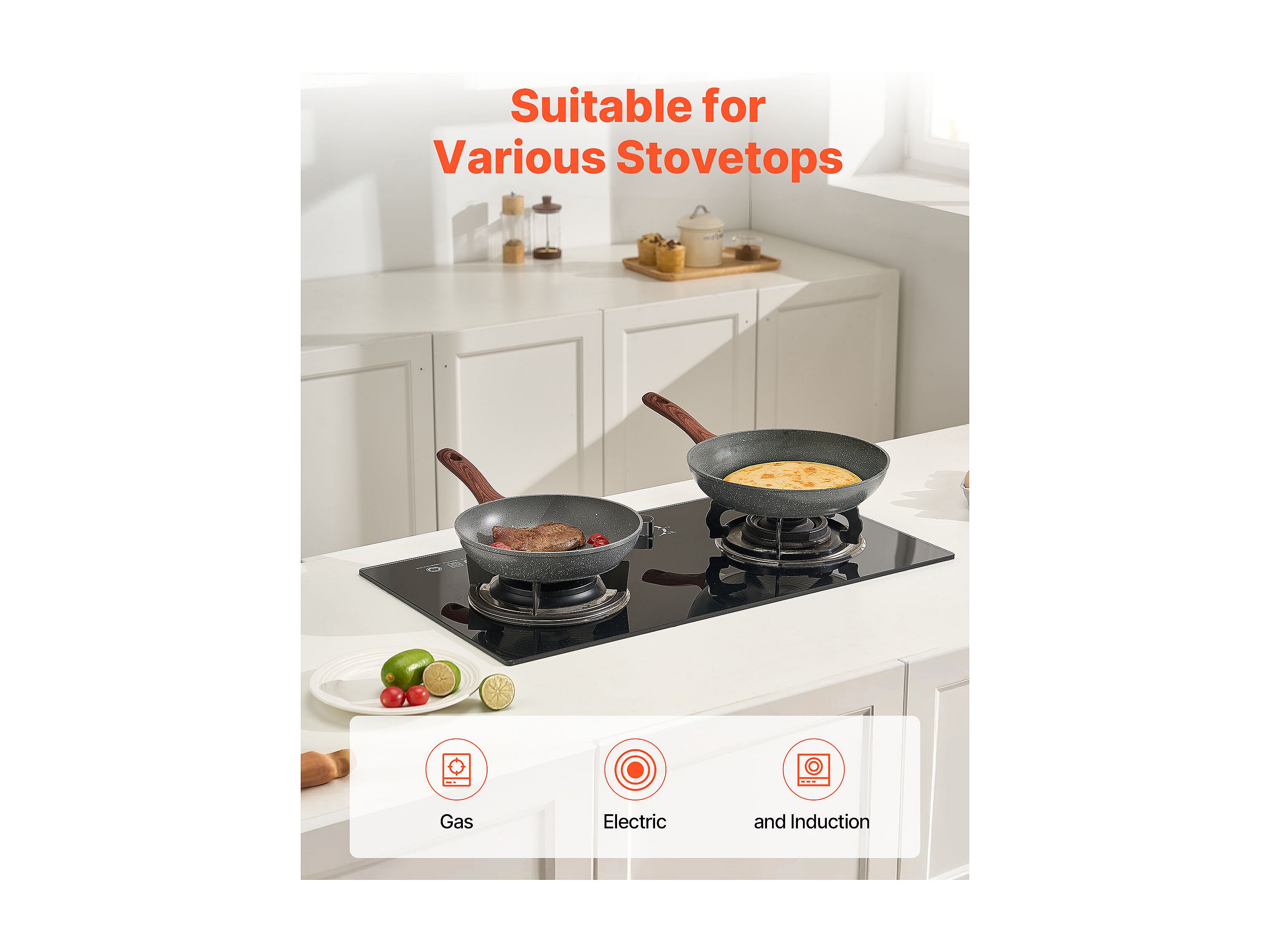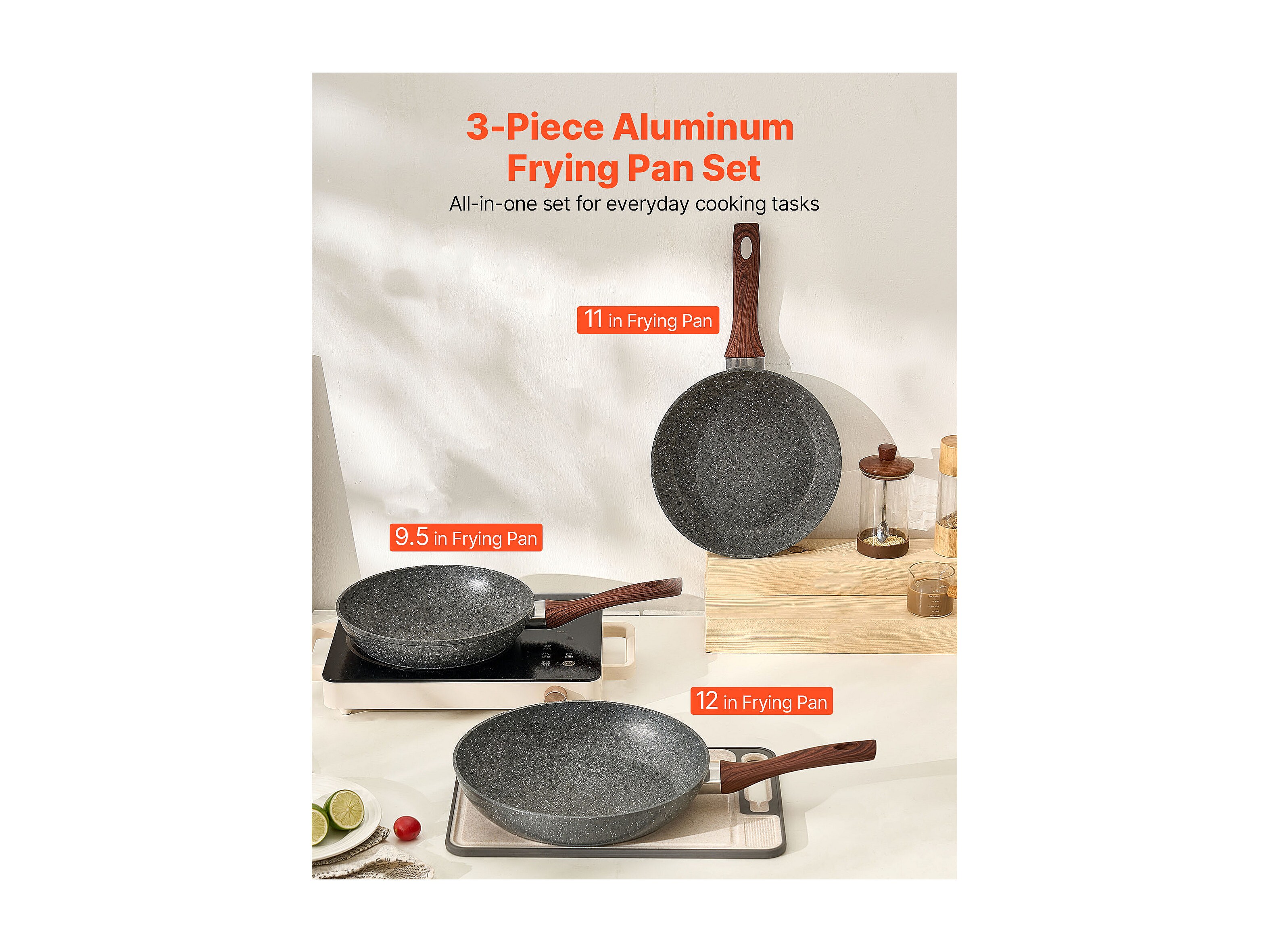 Aluminium-Pfanne SucceBuy, 3-Teilig, 25/28/32,5 Cm, Vorgewürzte Antihaft-Sauteuse mit hitzebeständigem Griff, für Gas, Elektro, Grau