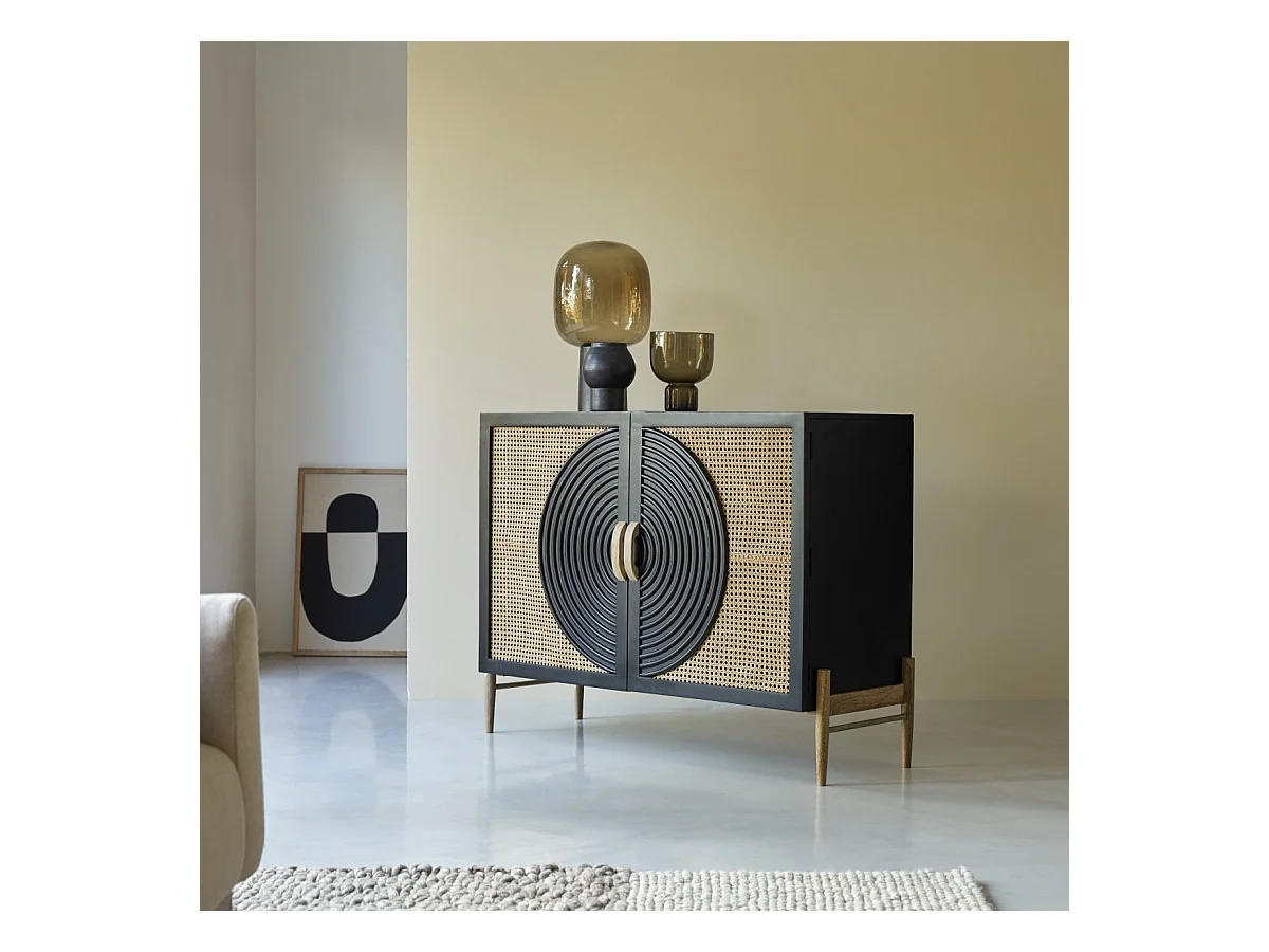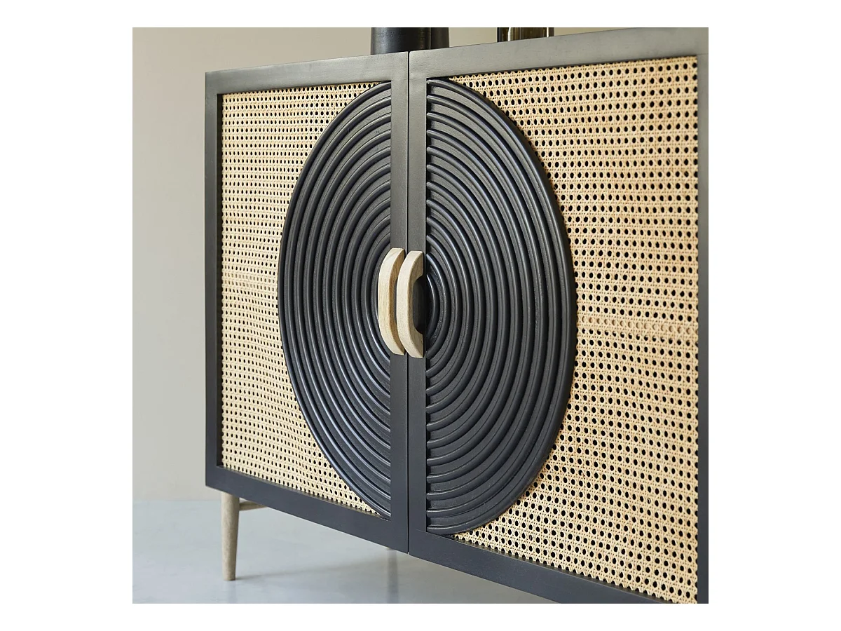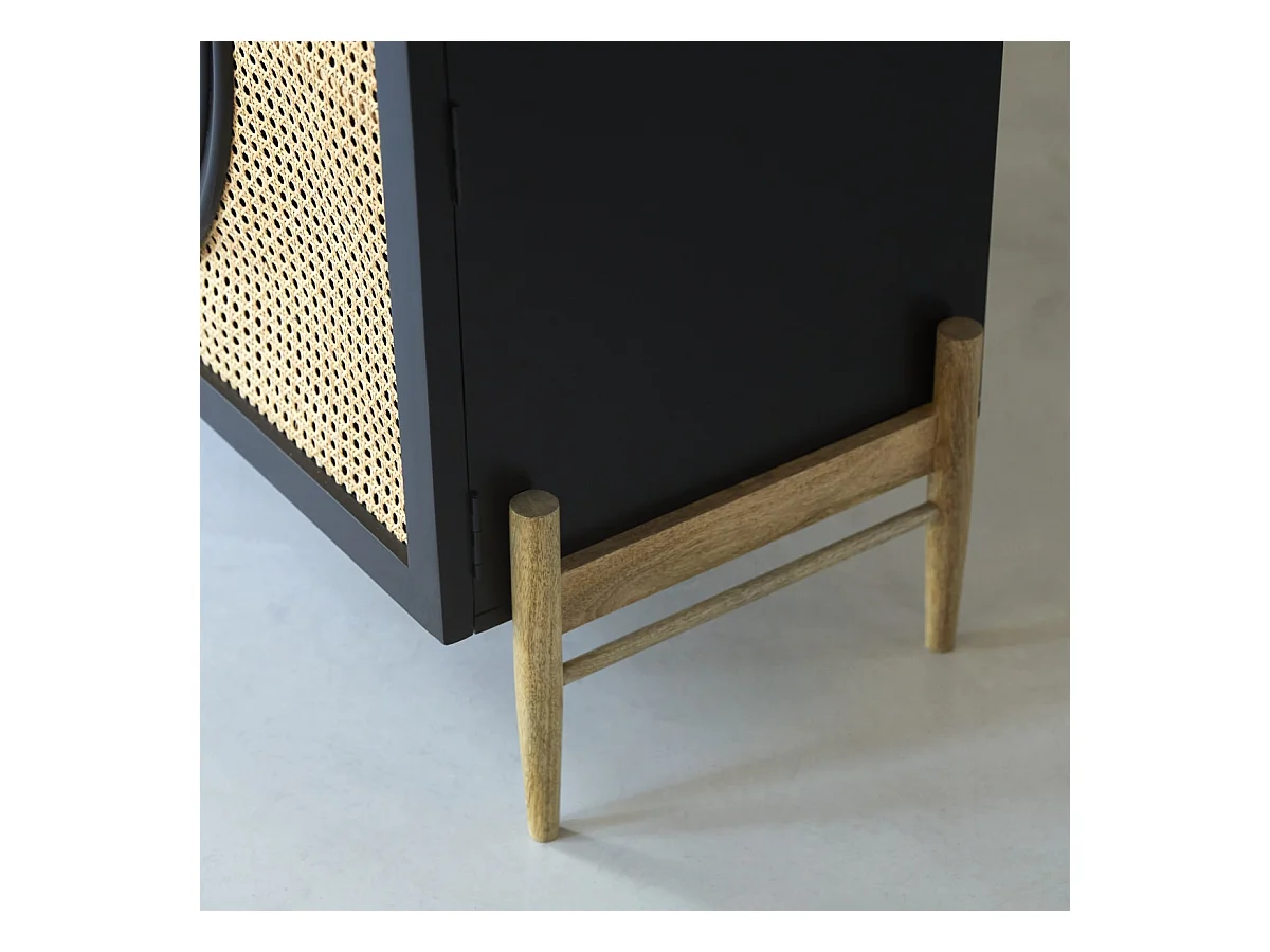Anrichte aus massivem Mangoholz schwarz und Rattan Sina 115 cm