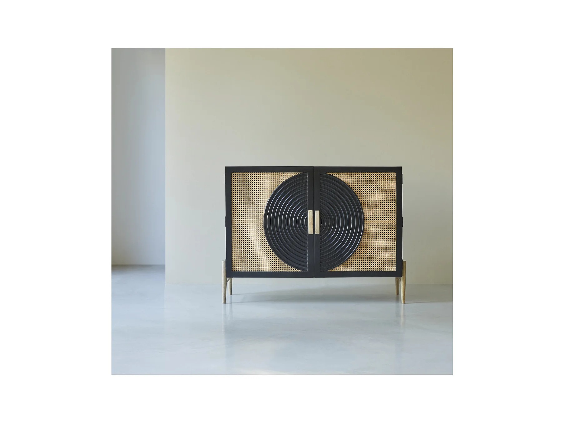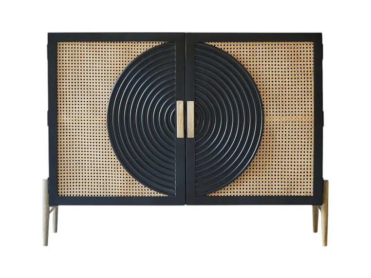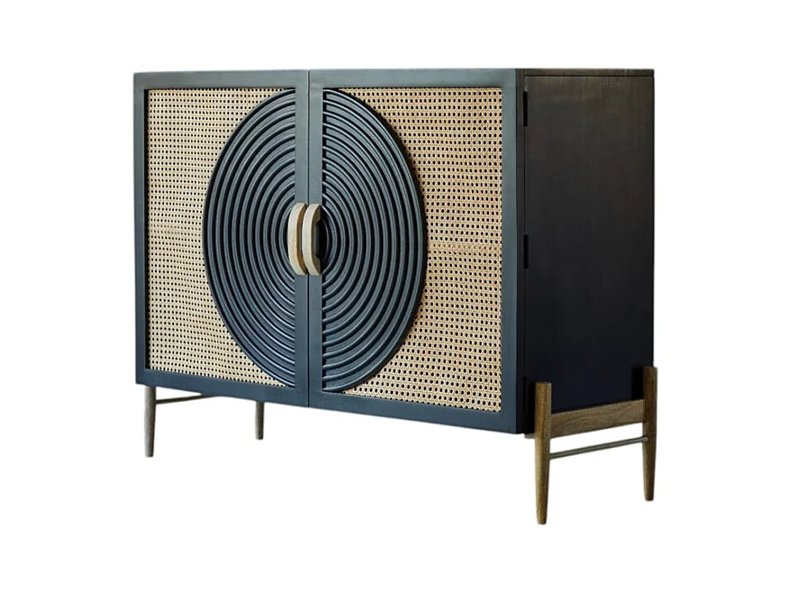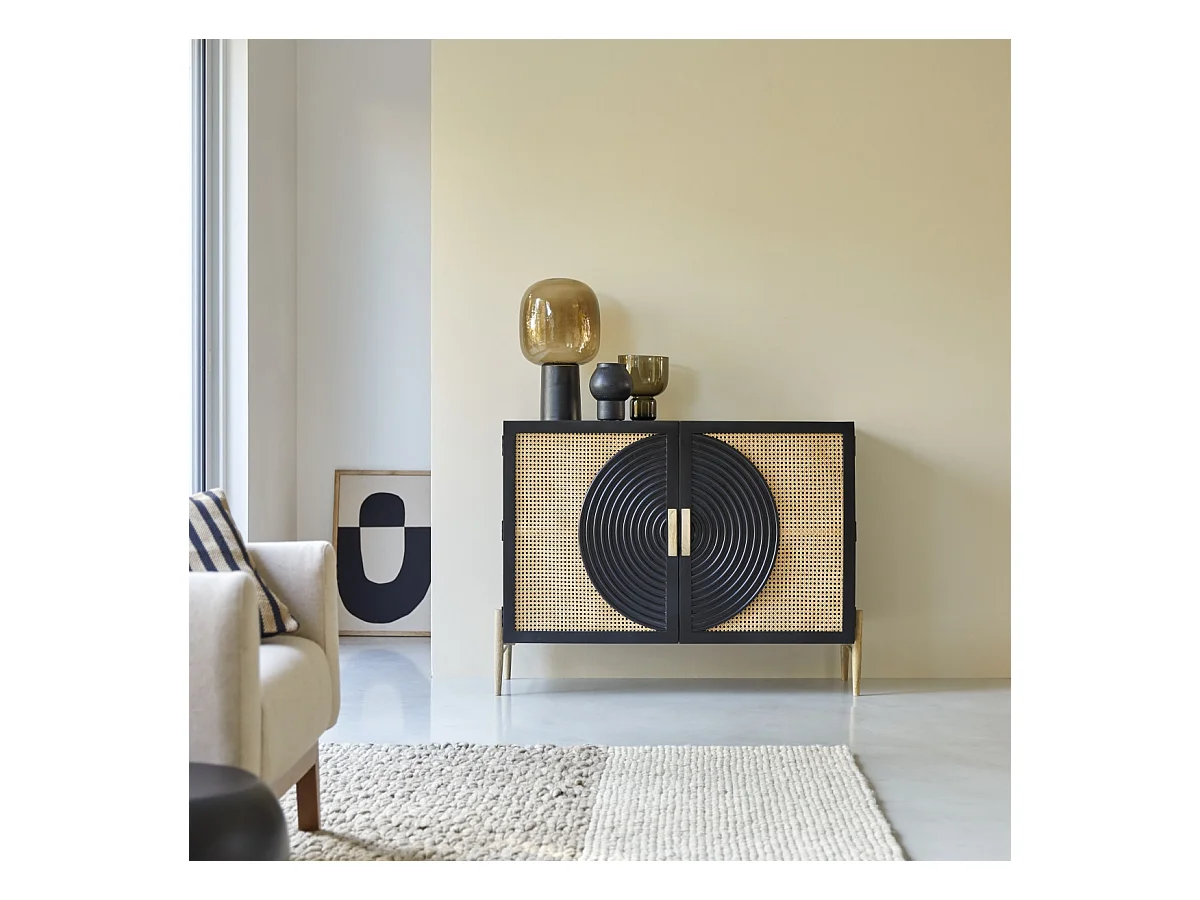 Anrichte aus massivem Mangoholz schwarz und Rattan Sina 115 cm