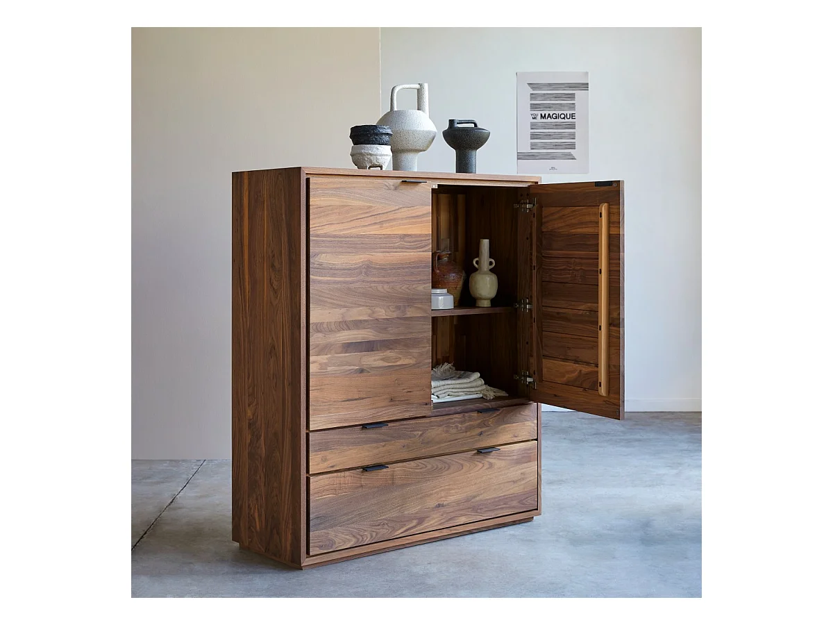 Anrichte Isaure aus massivem Nussbaumholz und Premium-Terrazzo 80 cm