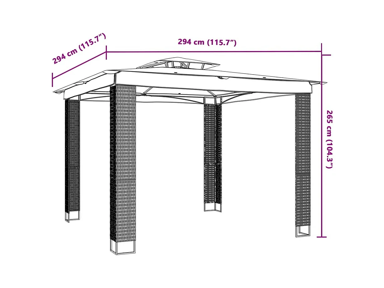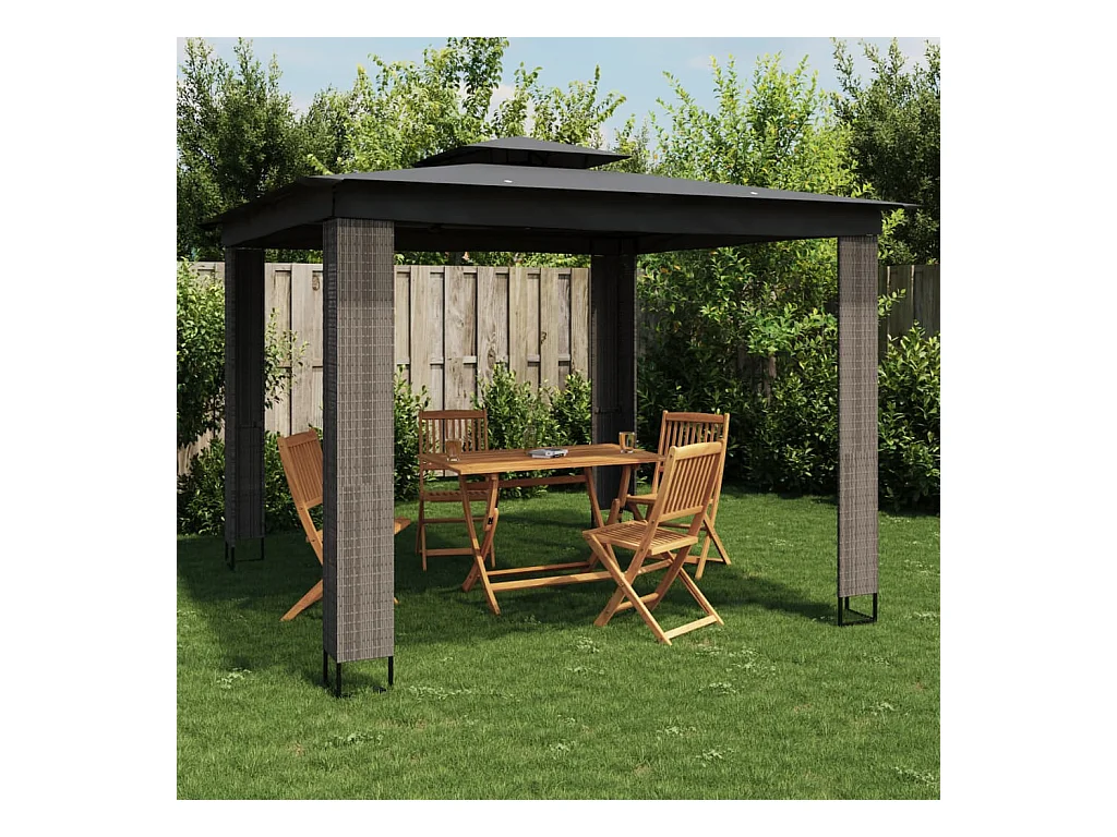 Anthrazitfarbener Doppeldachpavillon 2,94x2,94 m Stahl