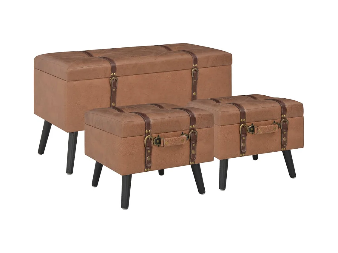 Aufbewahrungshocker 3er-Set Braun Kunstleder
