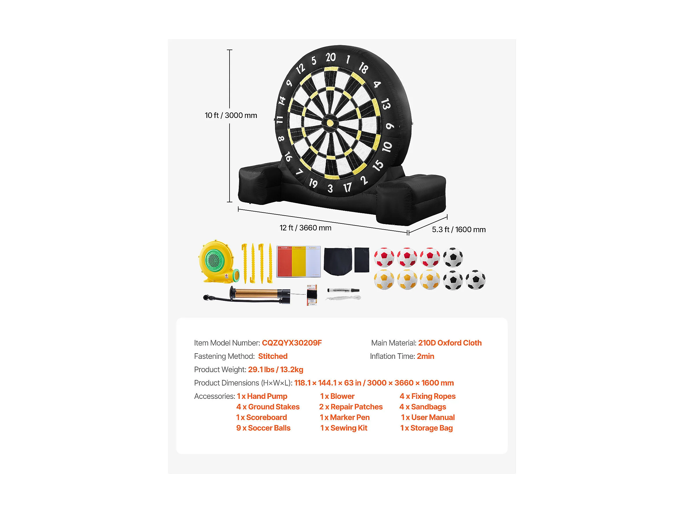 Aufblasbares Fußballtor SucceBuy, 3000 mm, 9 Bälle und Luftpumpe