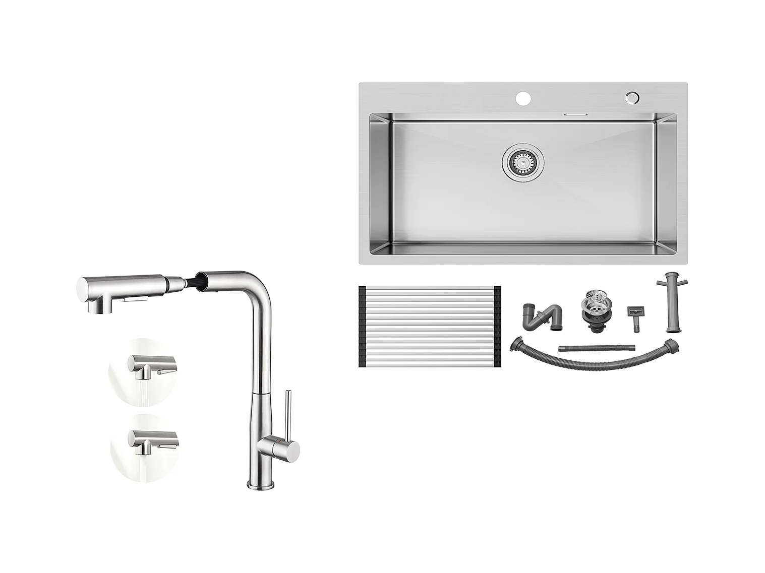Auralum MAX Küchenspüle 1 Becken Edelstahl gebürstet 75*45*19CM - Spüle mit faltbarer Abtropffläche + Küchenarmatur mit 360° drehbarer Ausziehbrause