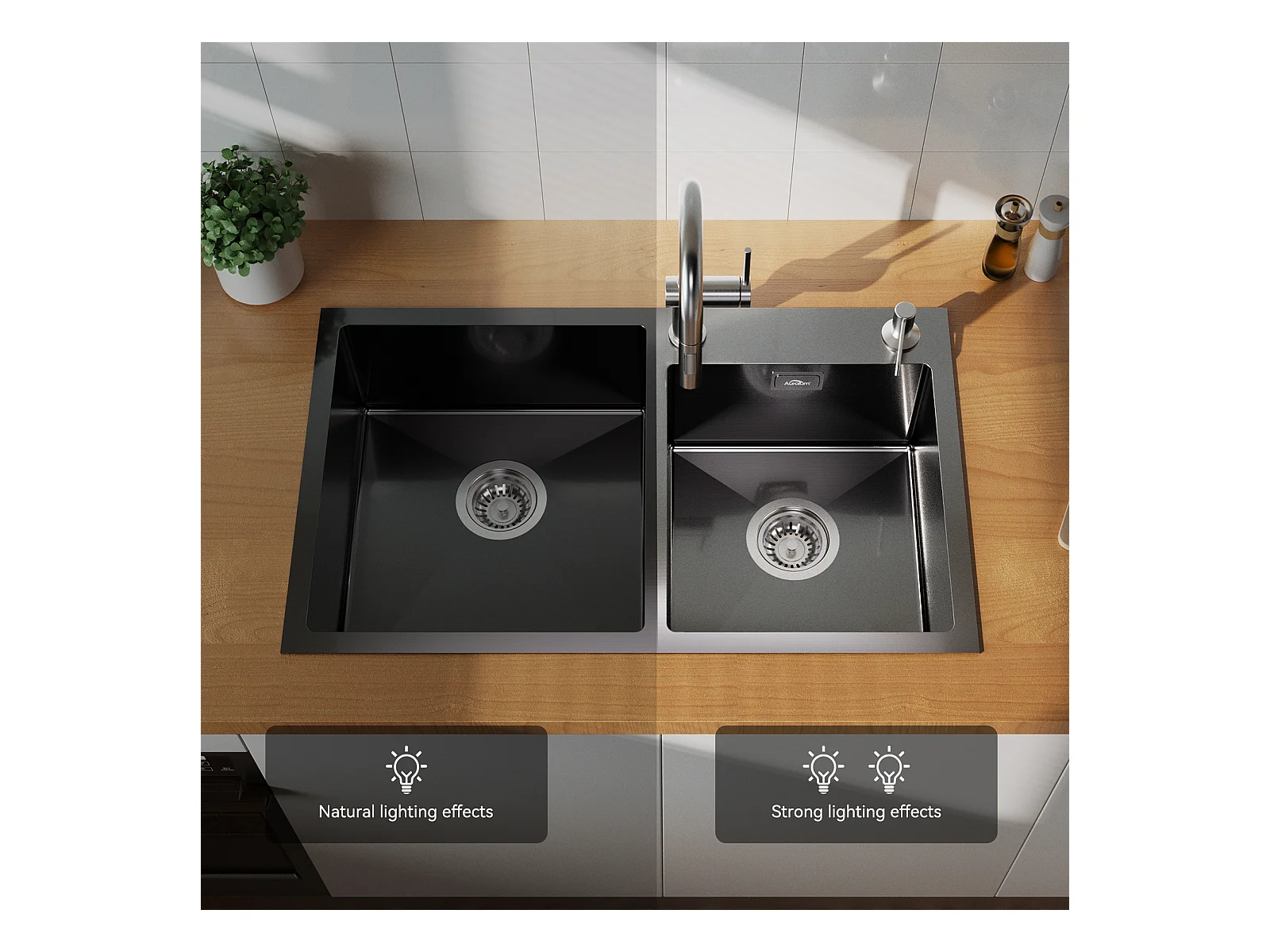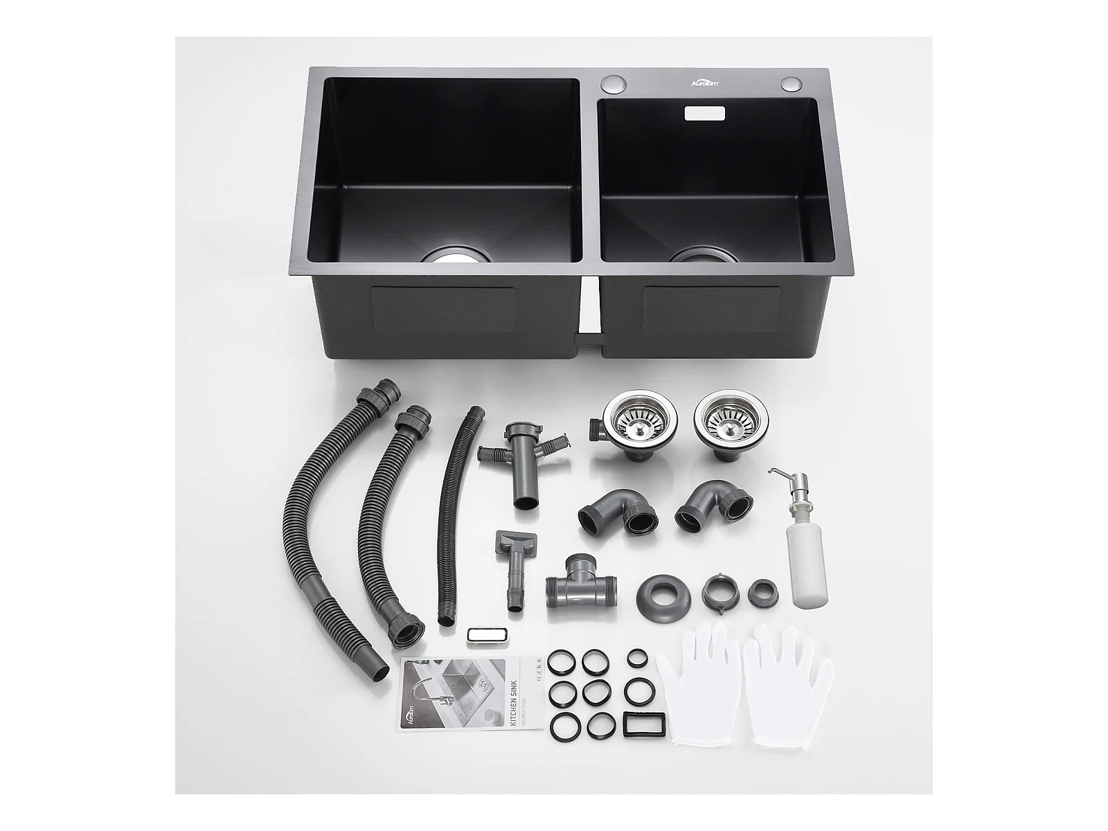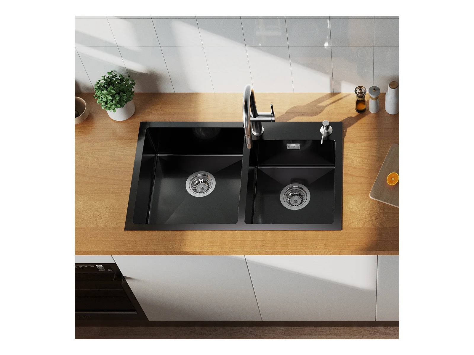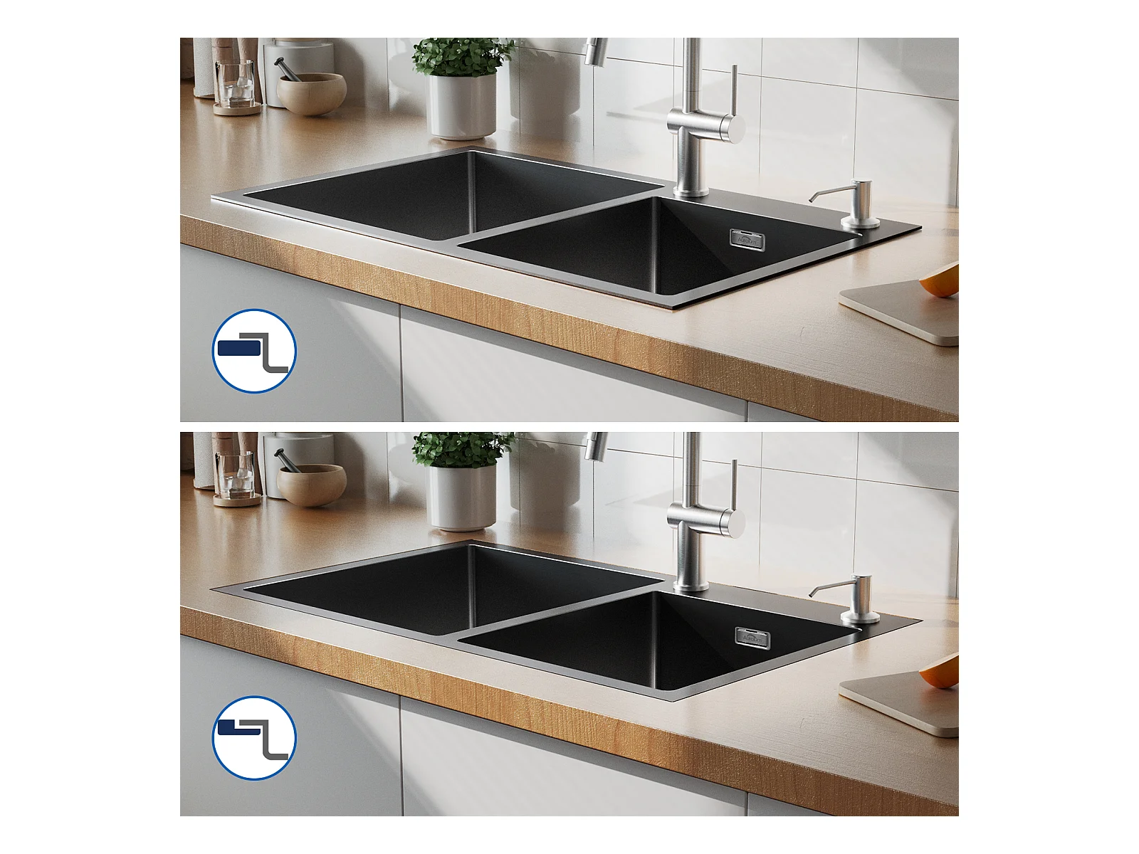 AURALUM MAX Küchenspüle 75x45x19cm, Edelstahl Doppelspüle mit 2 Befestigungslöchern/mit Seifenspender Küchenspülen-Set, Schwarz