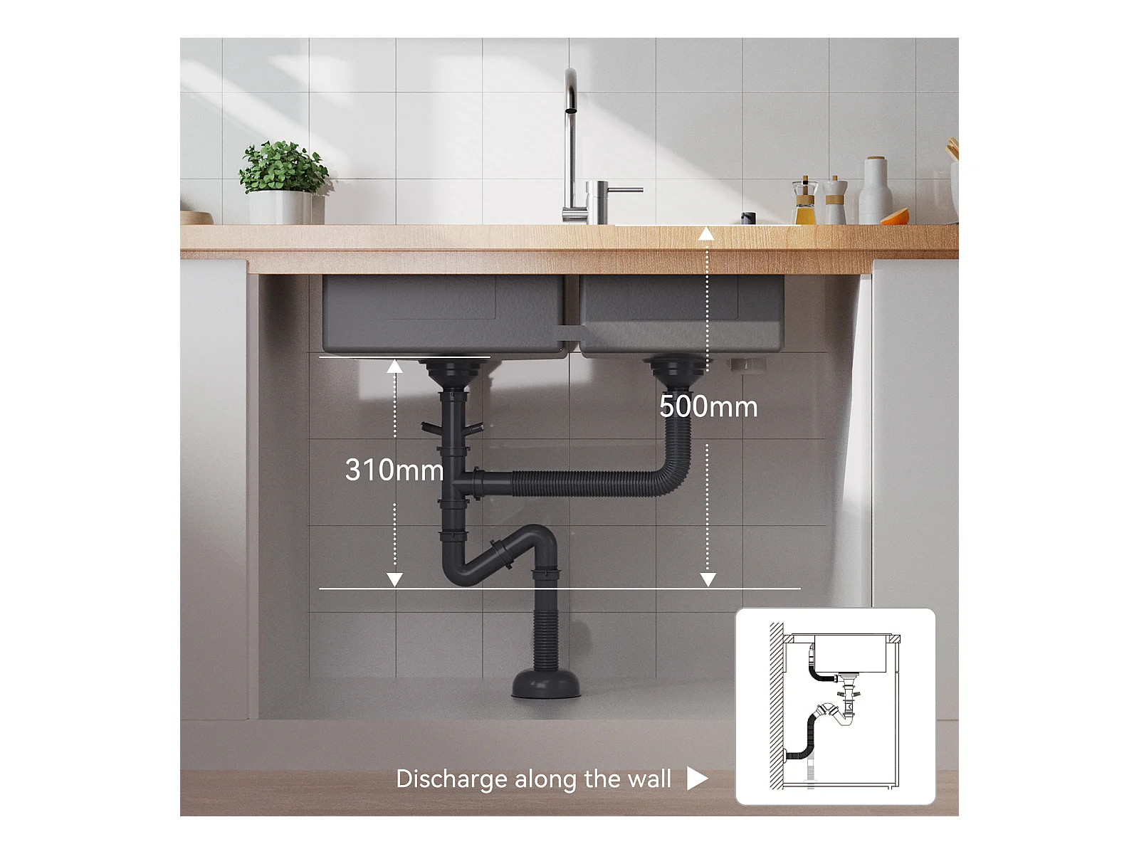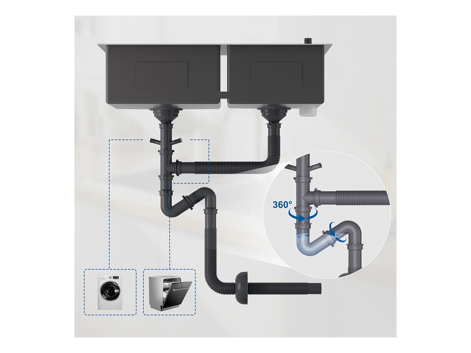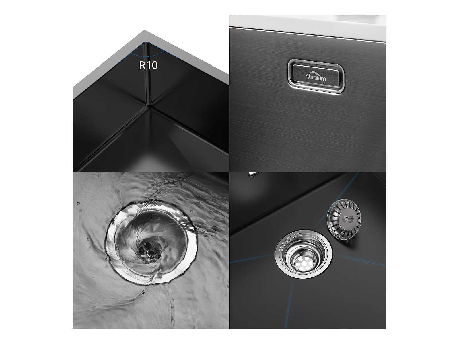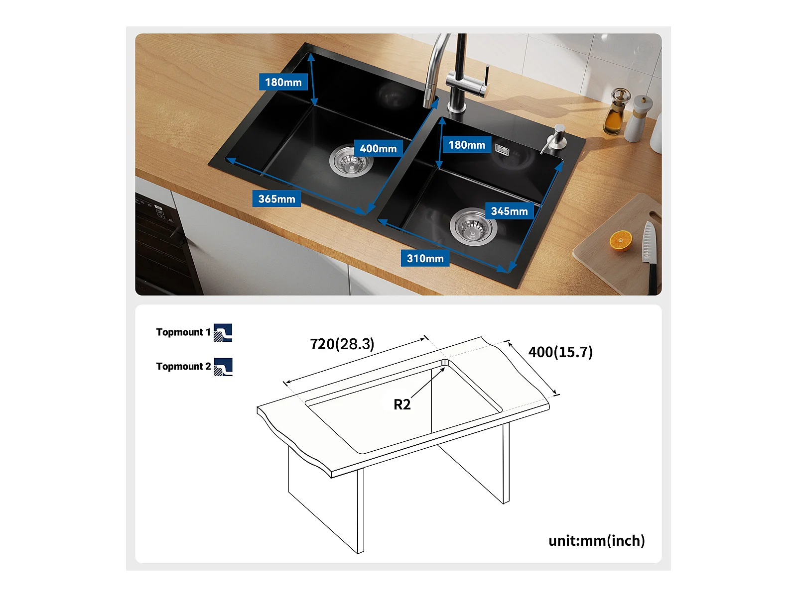 AURALUM MAX Küchenspüle 75x45x19cm, Edelstahl Doppelspüle mit 2 Befestigungslöchern/mit Seifenspender Küchenspülen-Set, Schwarz