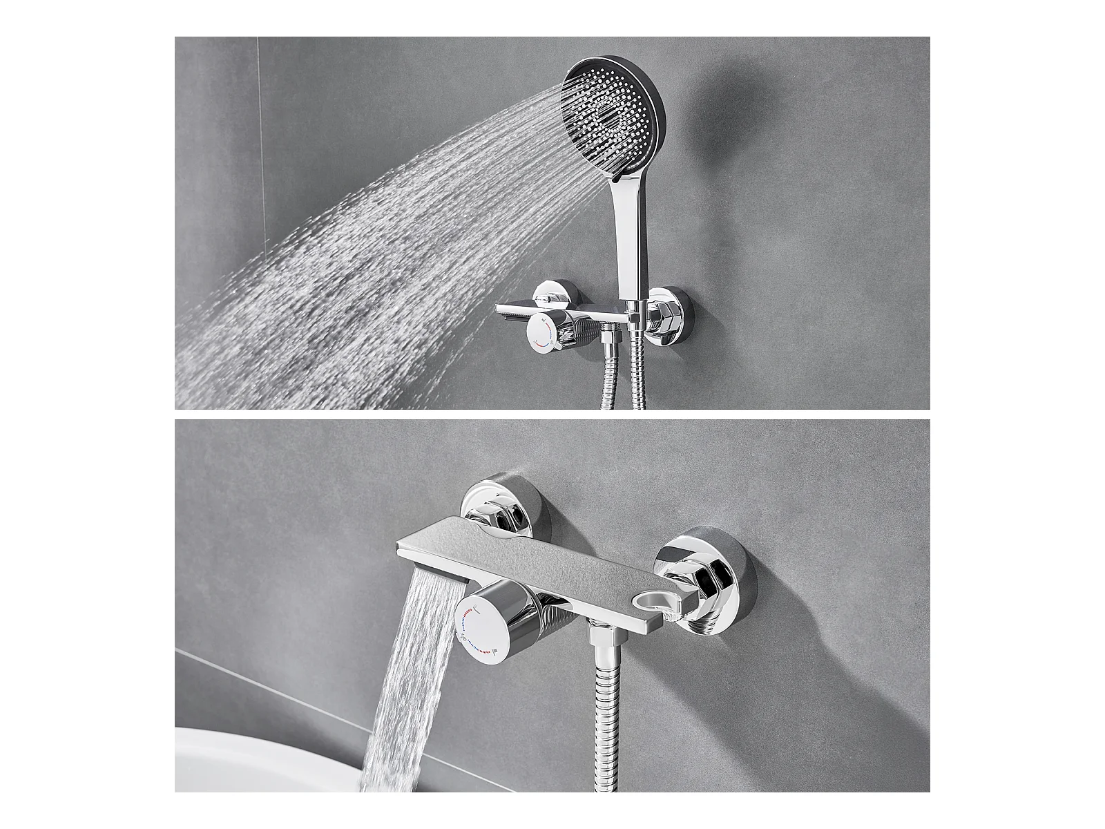 Auralum MAX Wasserfall-Badewannenarmatur, wandmontierte Badewannenmischbatterie mit 5 Modi, Handbrause, Messing-Badezimmermischbatterie, Chrom