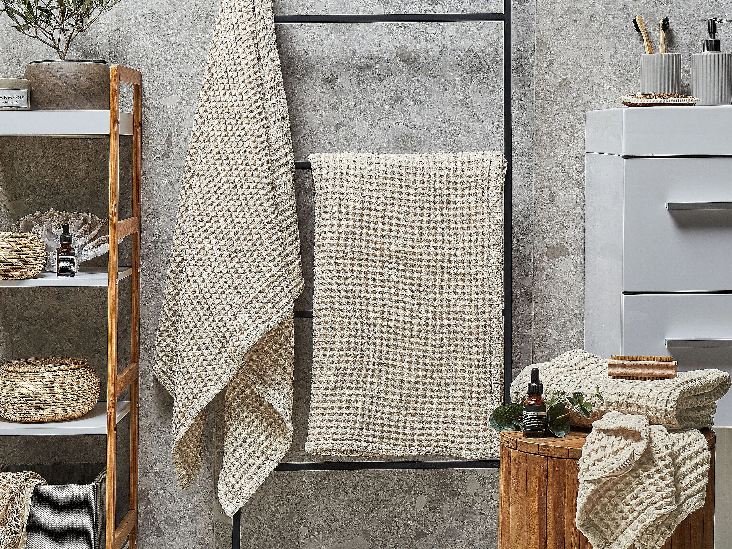Badehandtuch 4er Set Baumwolle beige verschiedenen Größen Areora