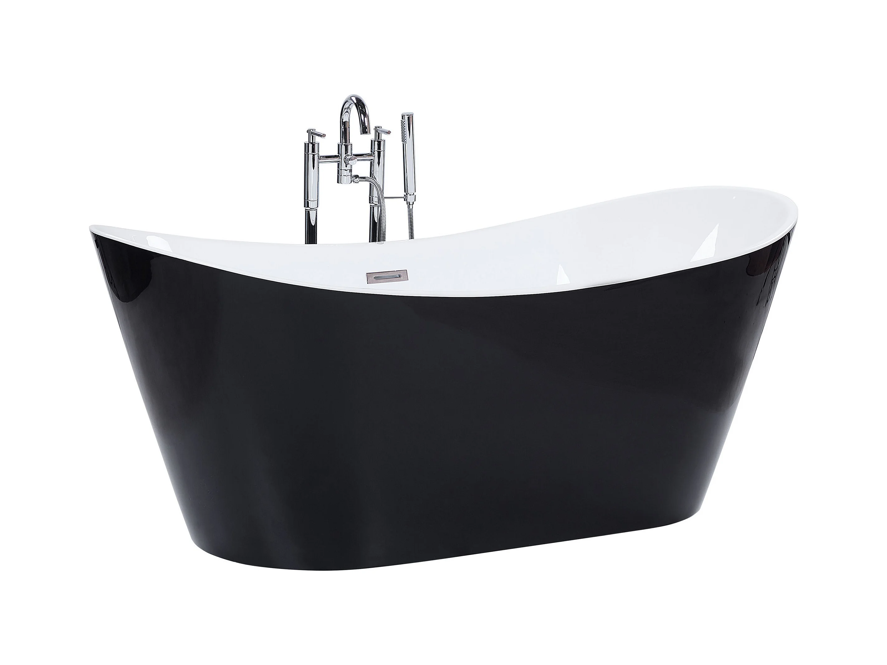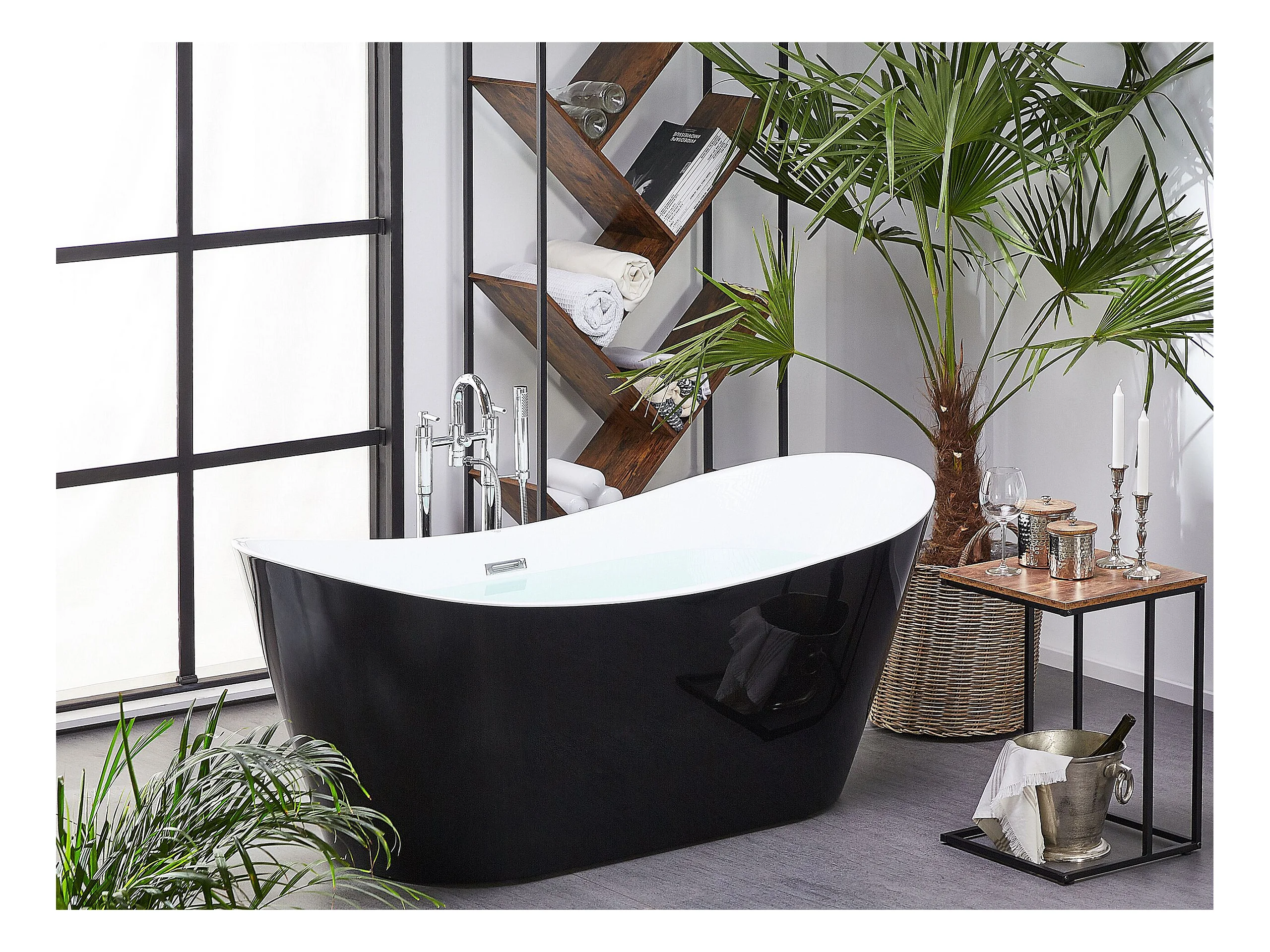 Acryl Badewanne oval freistehend schwarz-weiß mit Überlauf 170 x 72 cm Havana