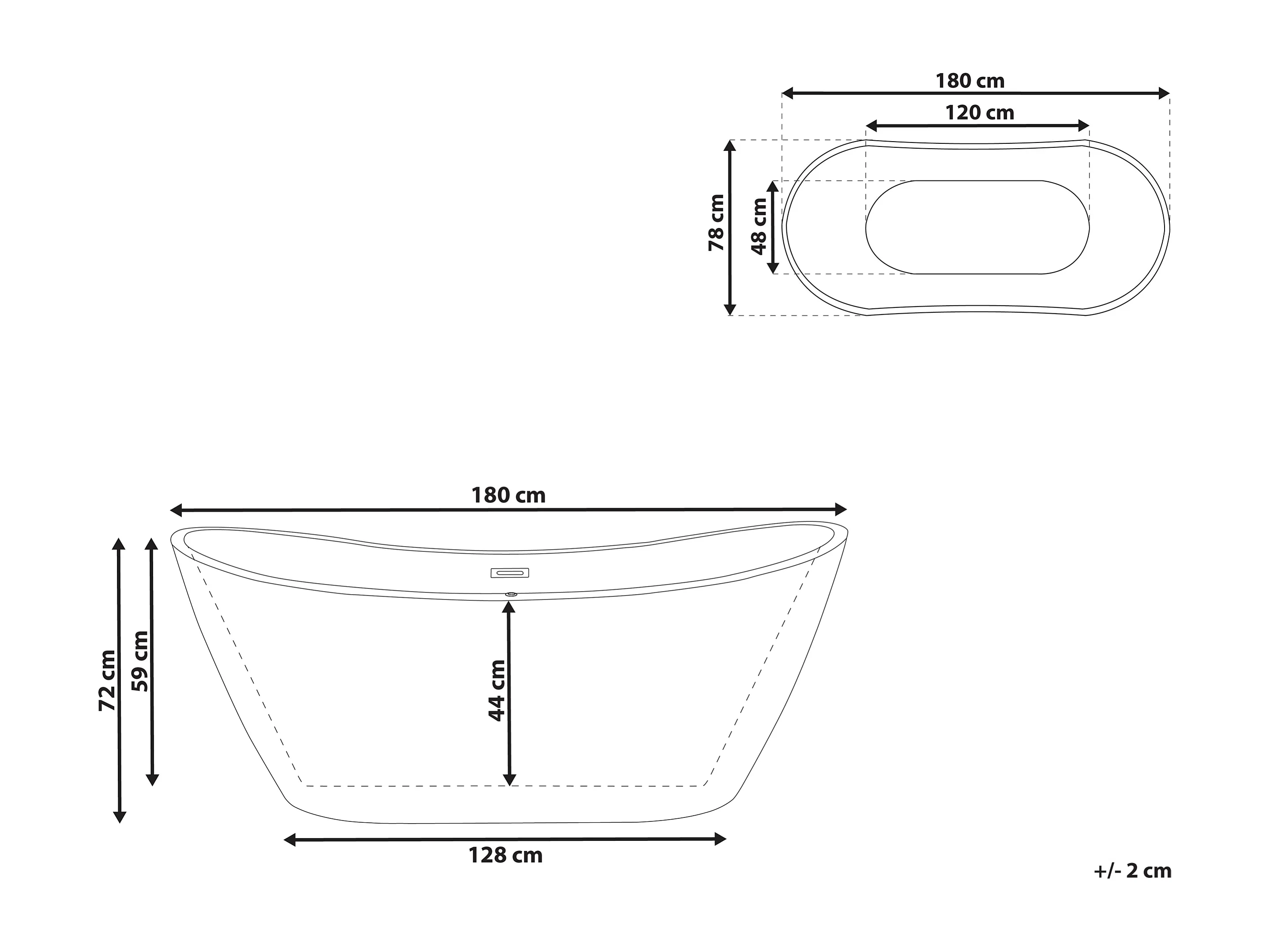 Freistehende Badwanne ANTIGUA 180 x 78 cm Weiss