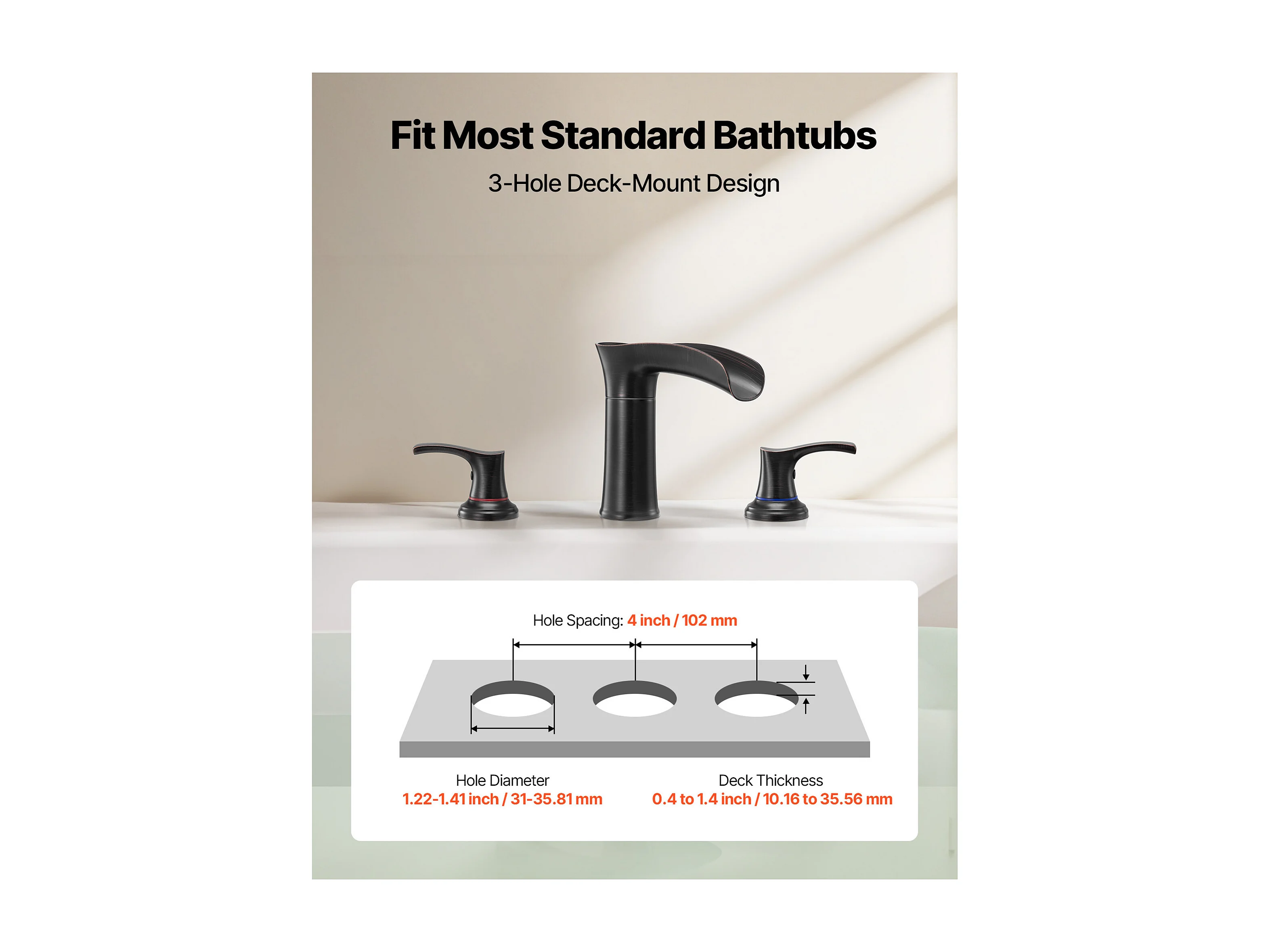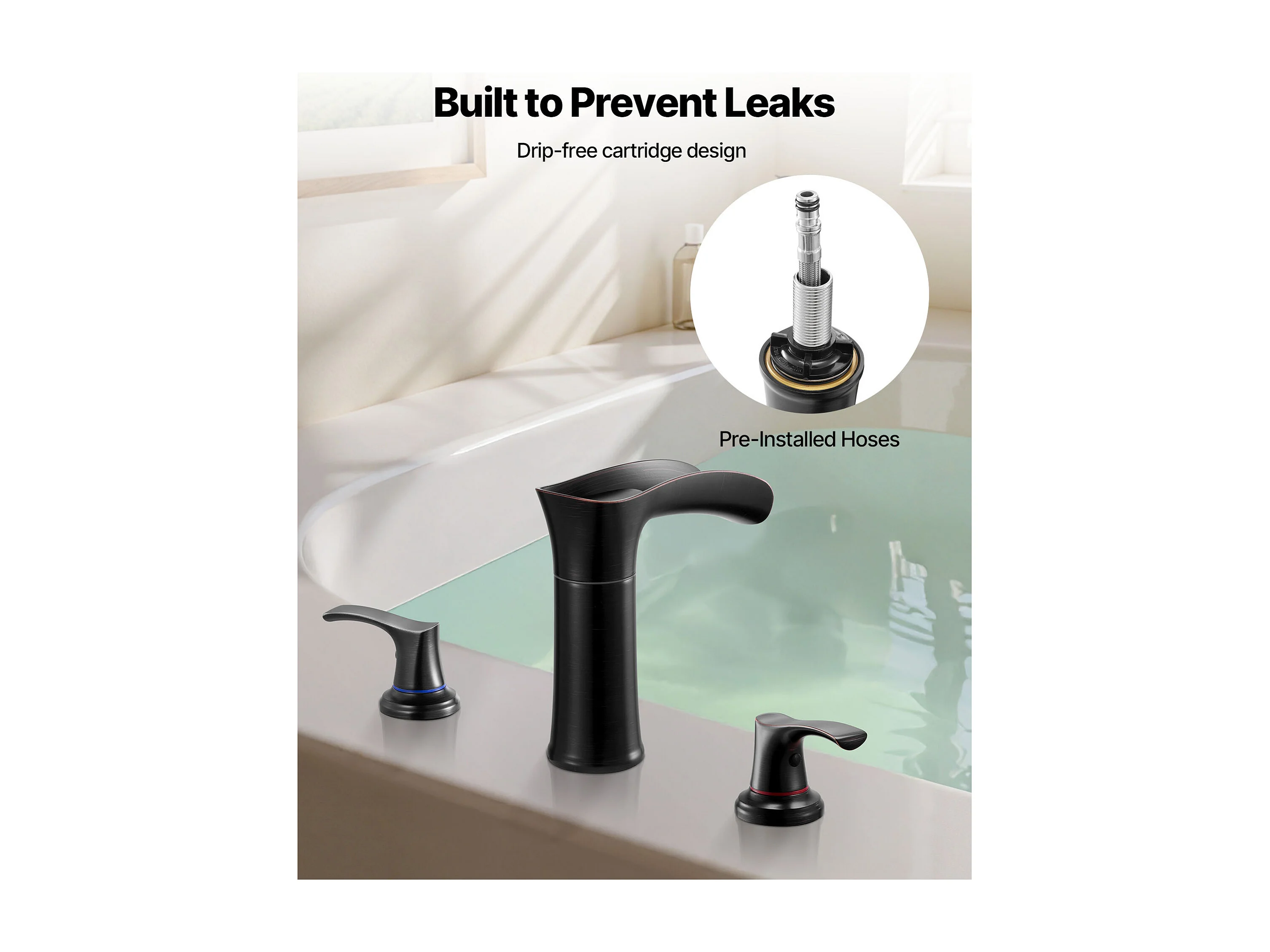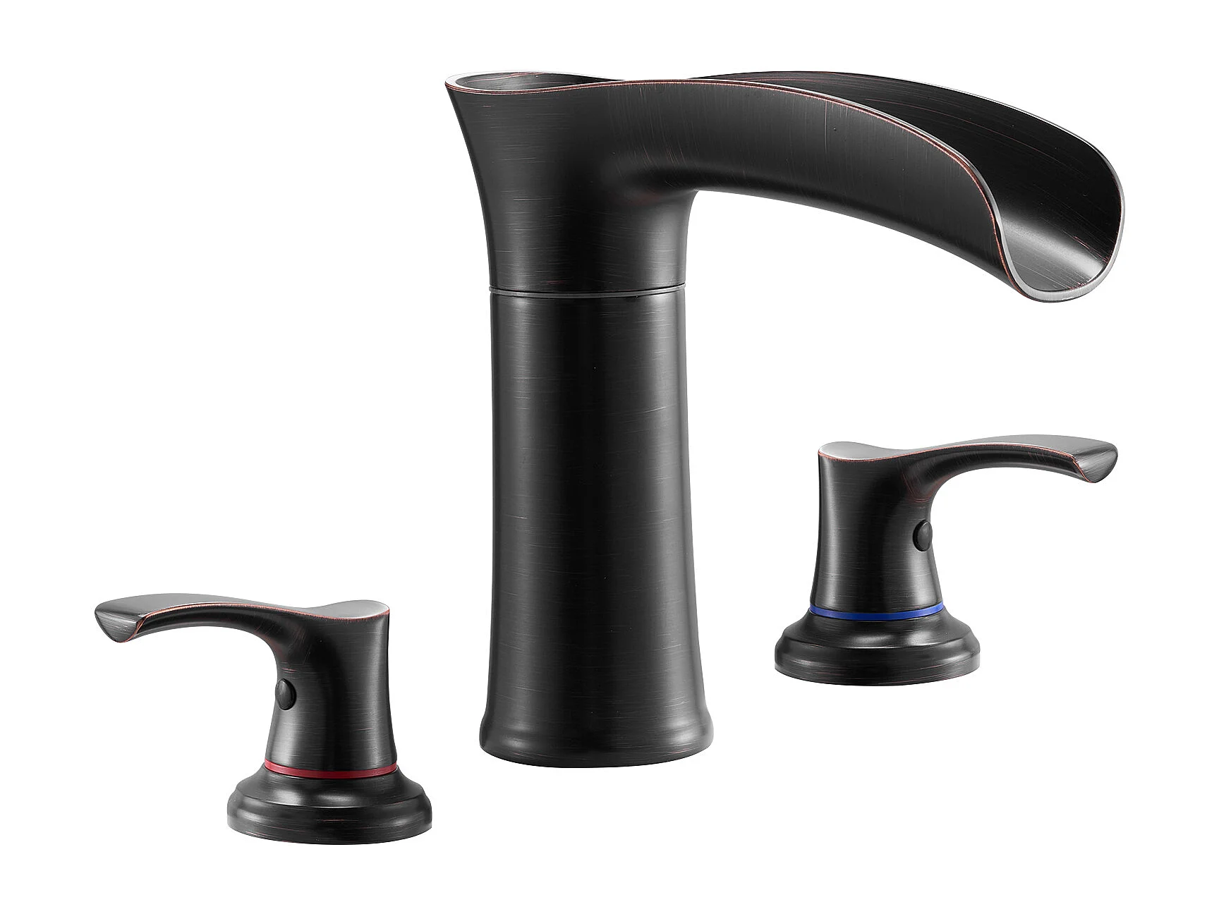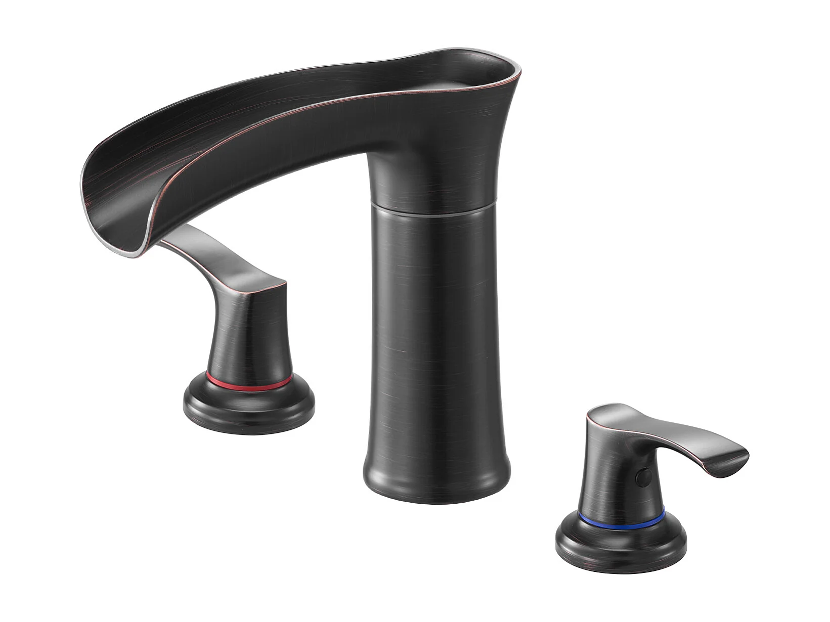 Badewannen Mischbatterie Römisch SucceBuy, Badewannenhahn mit 3 Löchern, Wasserfall, in Zinklegierung, mit 2 Griffen, Tropfstop, Geölte Bronze