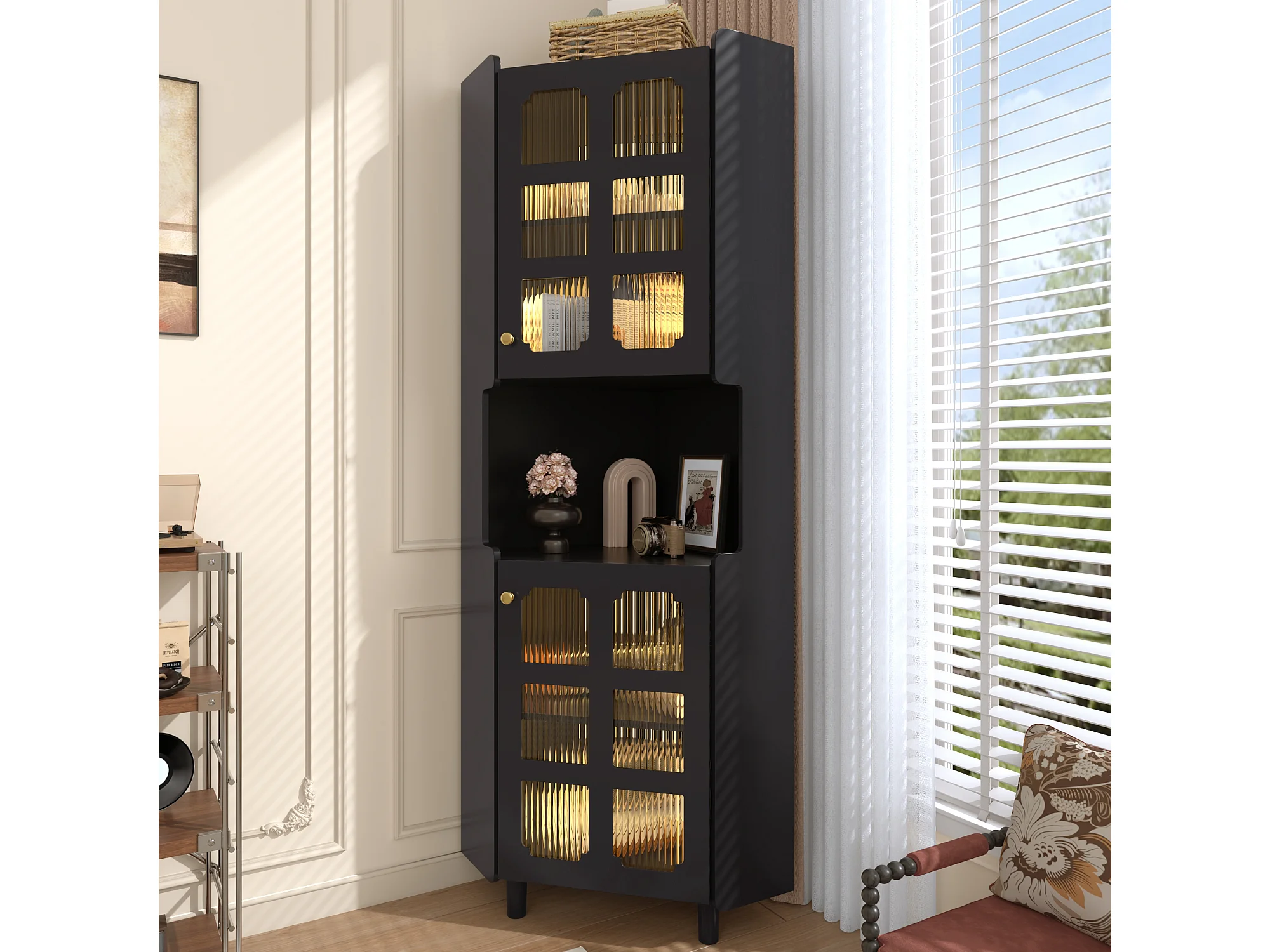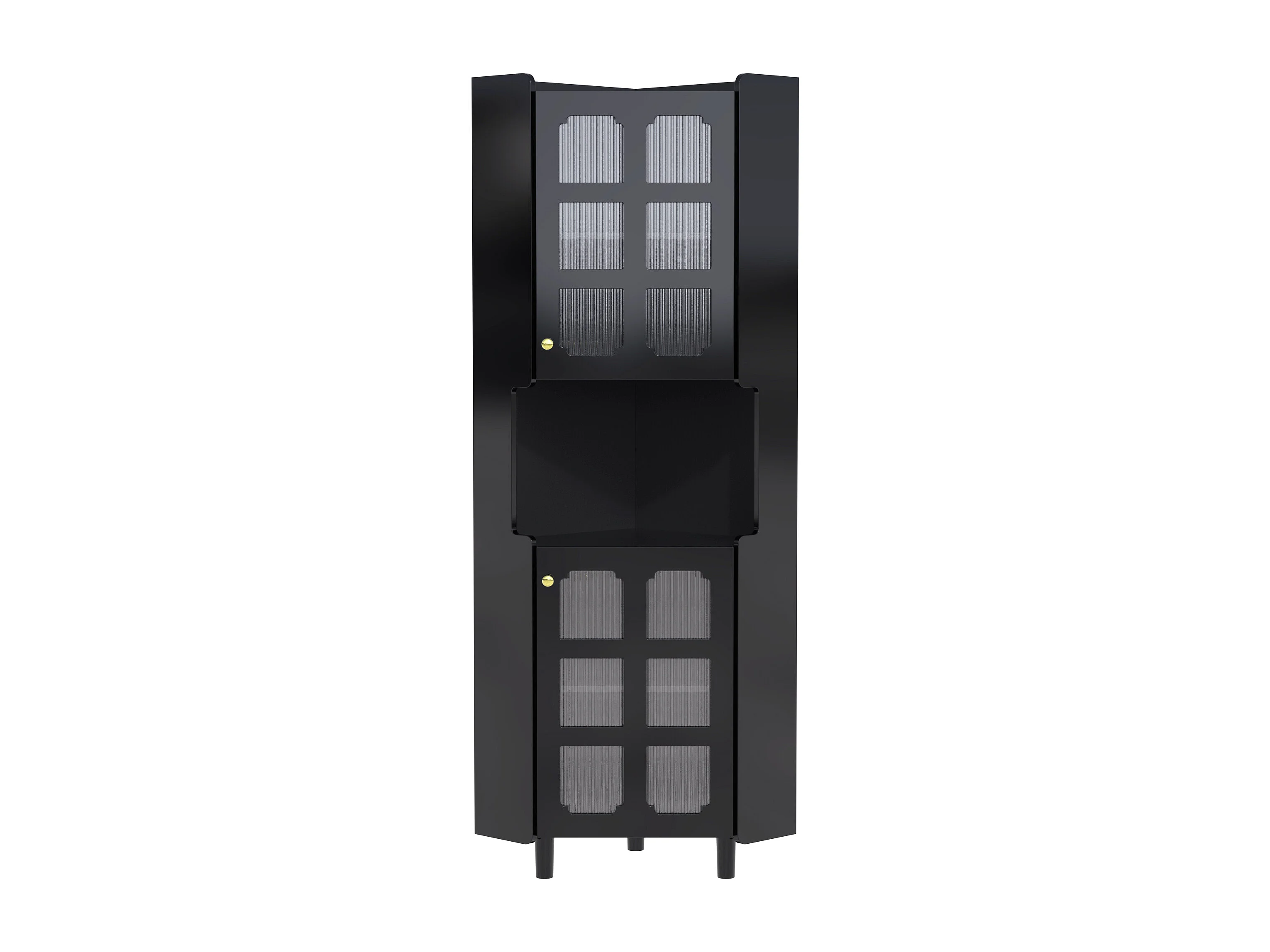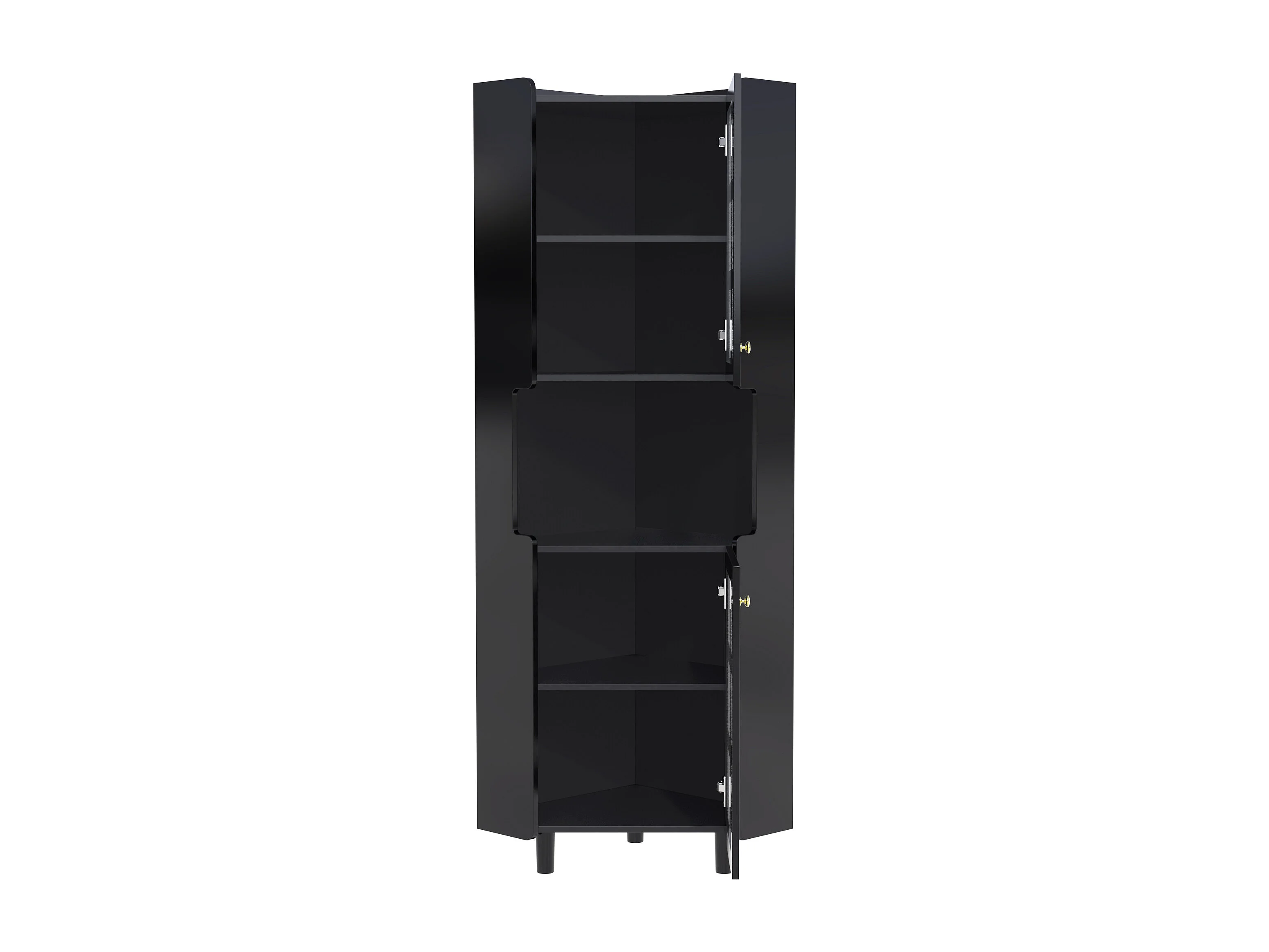 Badezimmer-Ecksäule - mit LED-Beleuchtung - mit 2 Türen - mit 4 Regalböden - mit offenen Regalen - schwarz