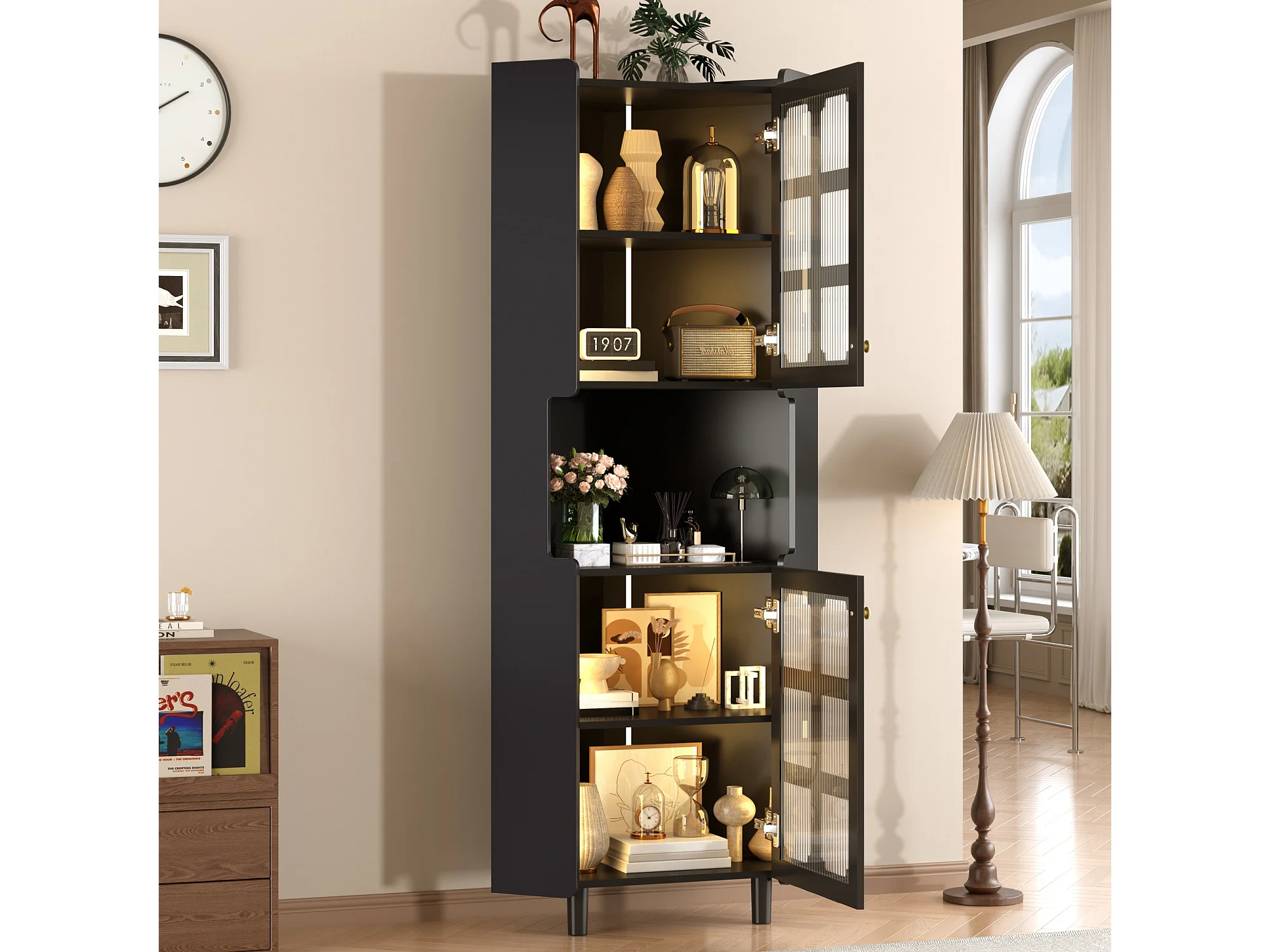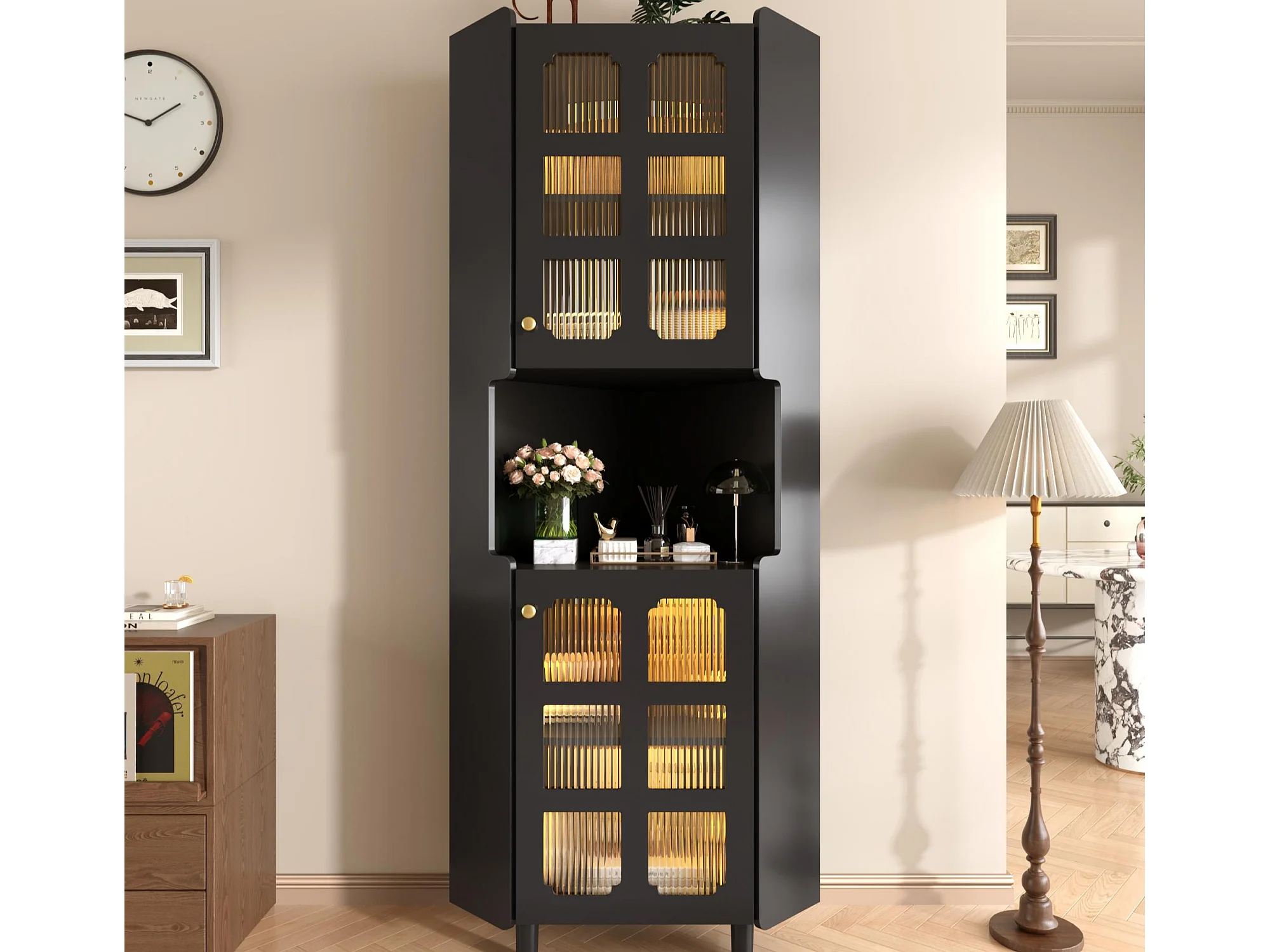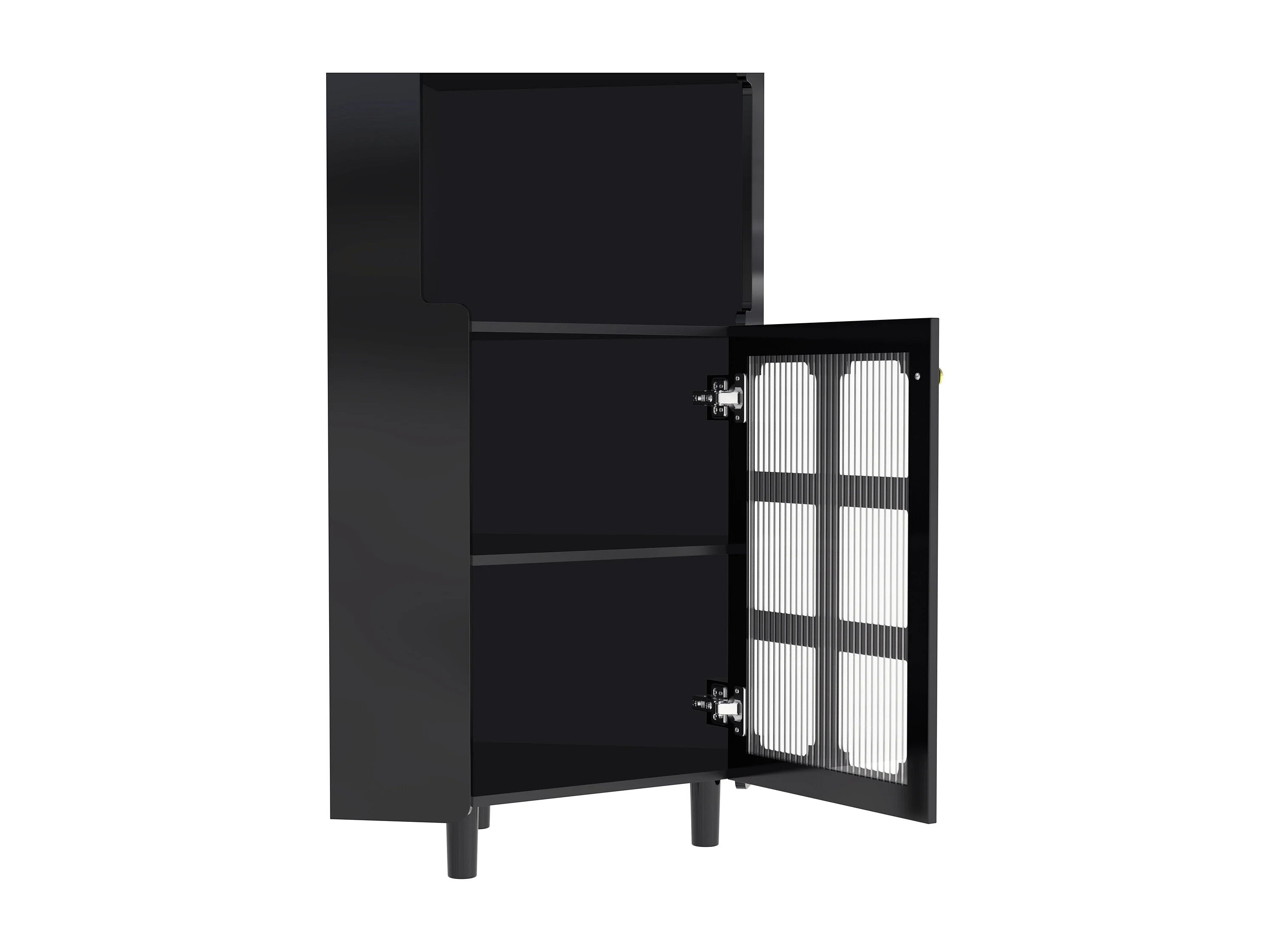 Badezimmer-Ecksäule - mit LED-Beleuchtung - mit 2 Türen - mit 4 Regalböden - mit offenen Regalen - schwarz