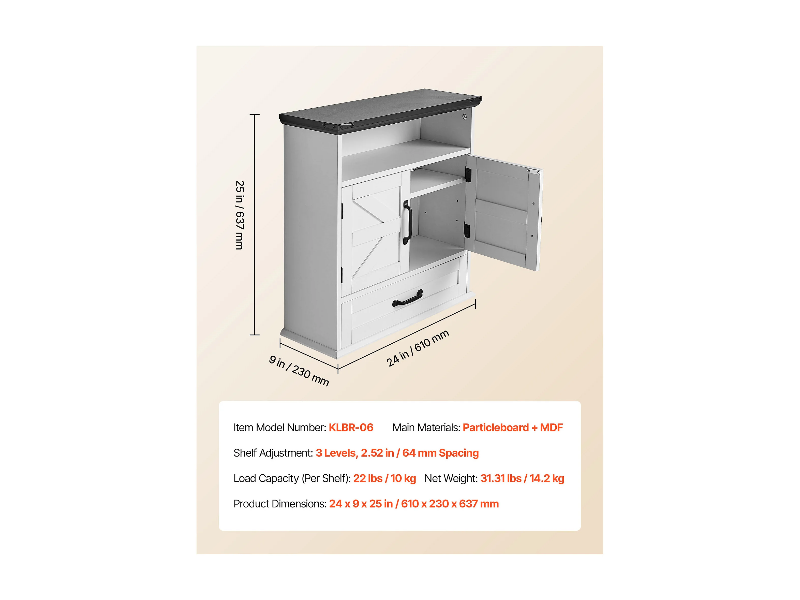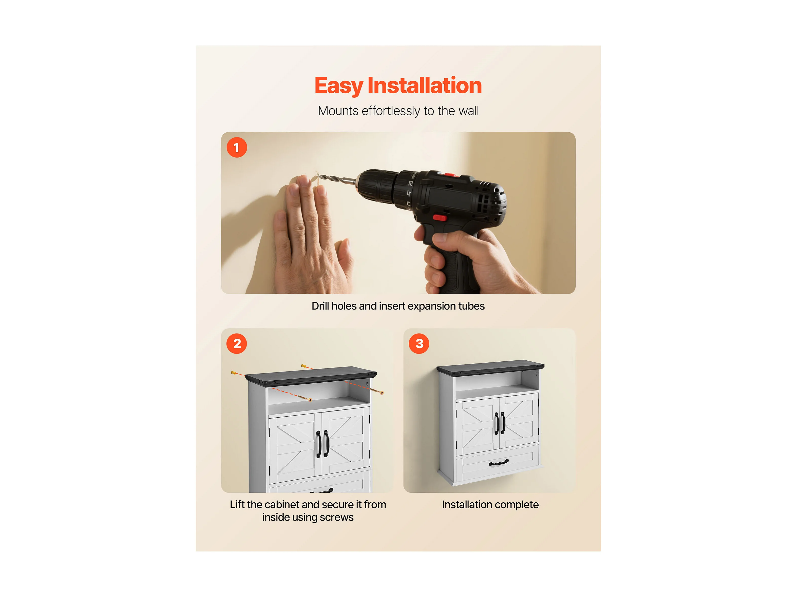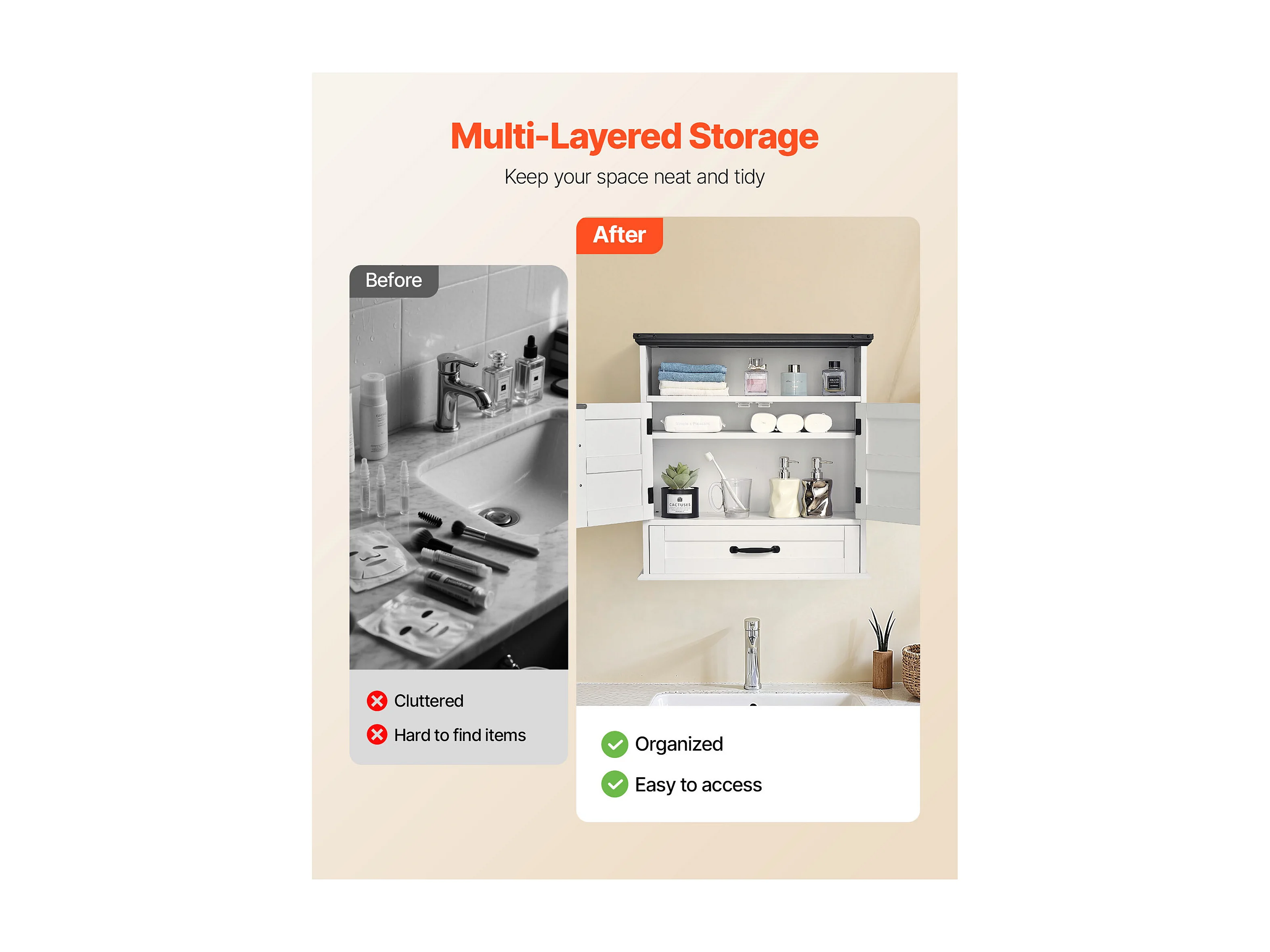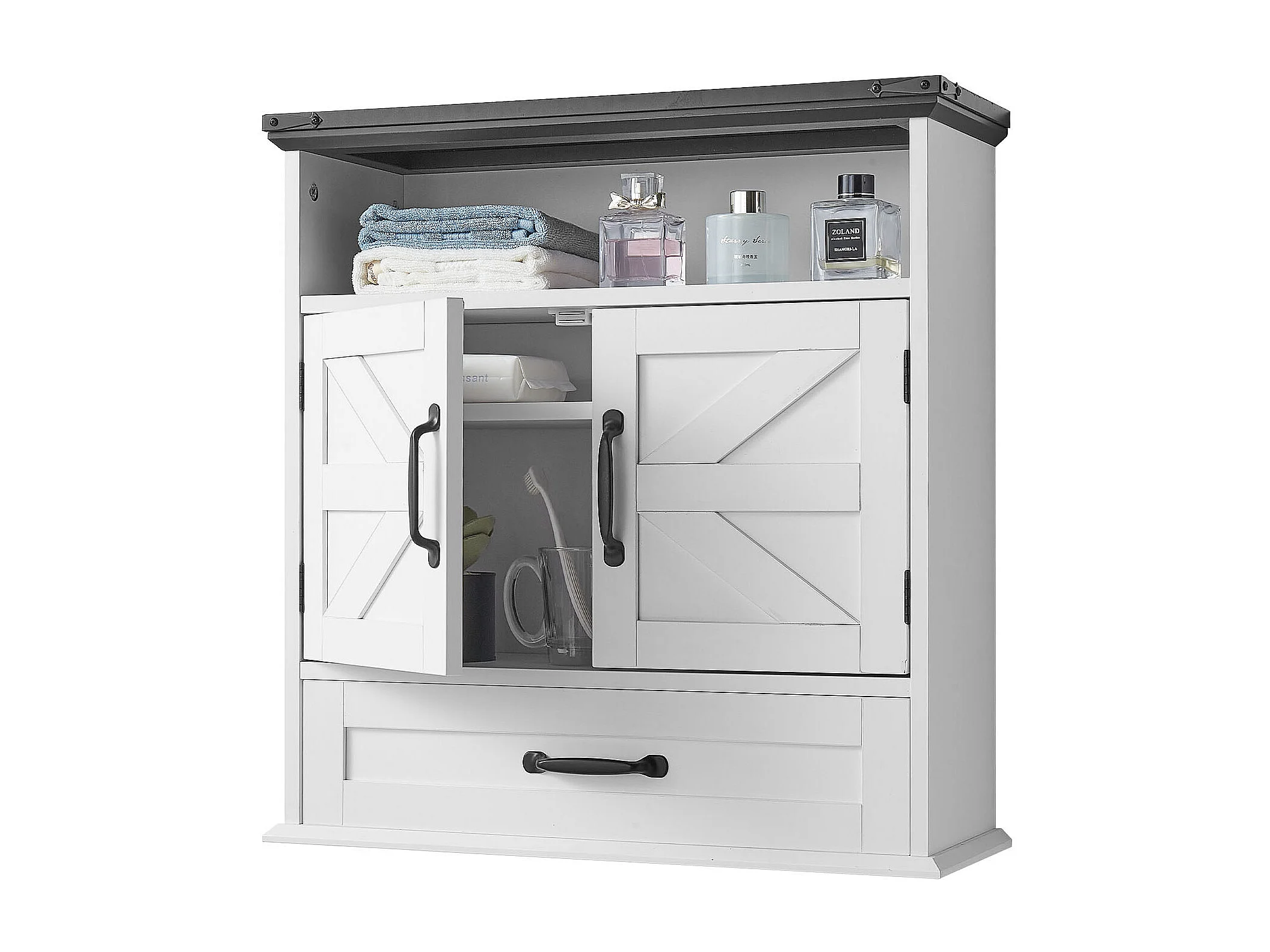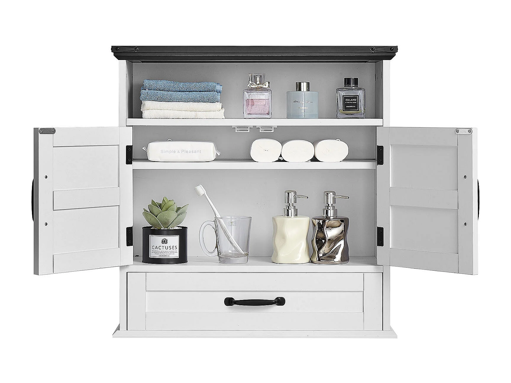 Badezimmer Hängeschrank SucceBuy, 2 Türen und Verstellbares Regal, Arzneischrank über der Toilette, Hängeorganizer für Wäscheraum