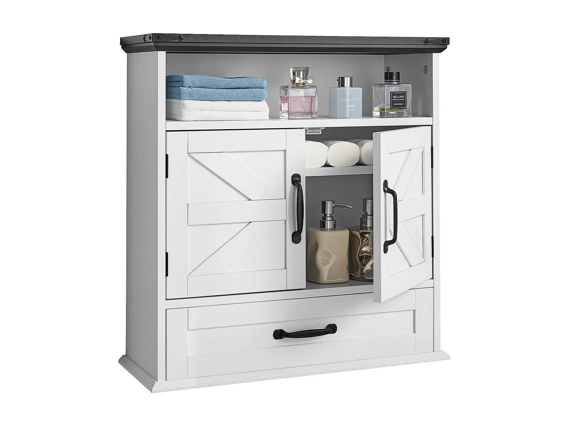 Badezimmer Hängeschrank SucceBuy, 2 Türen und Verstellbares Regal, Arzneischrank über der Toilette, Hängemöbel mit Offenem Fach