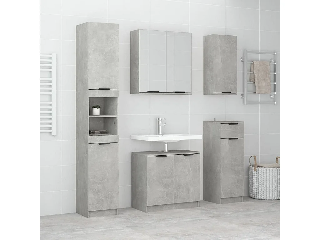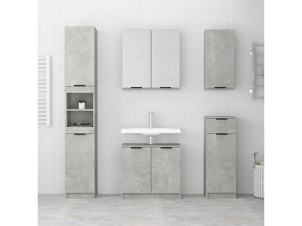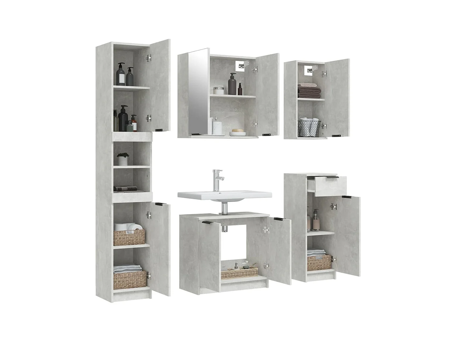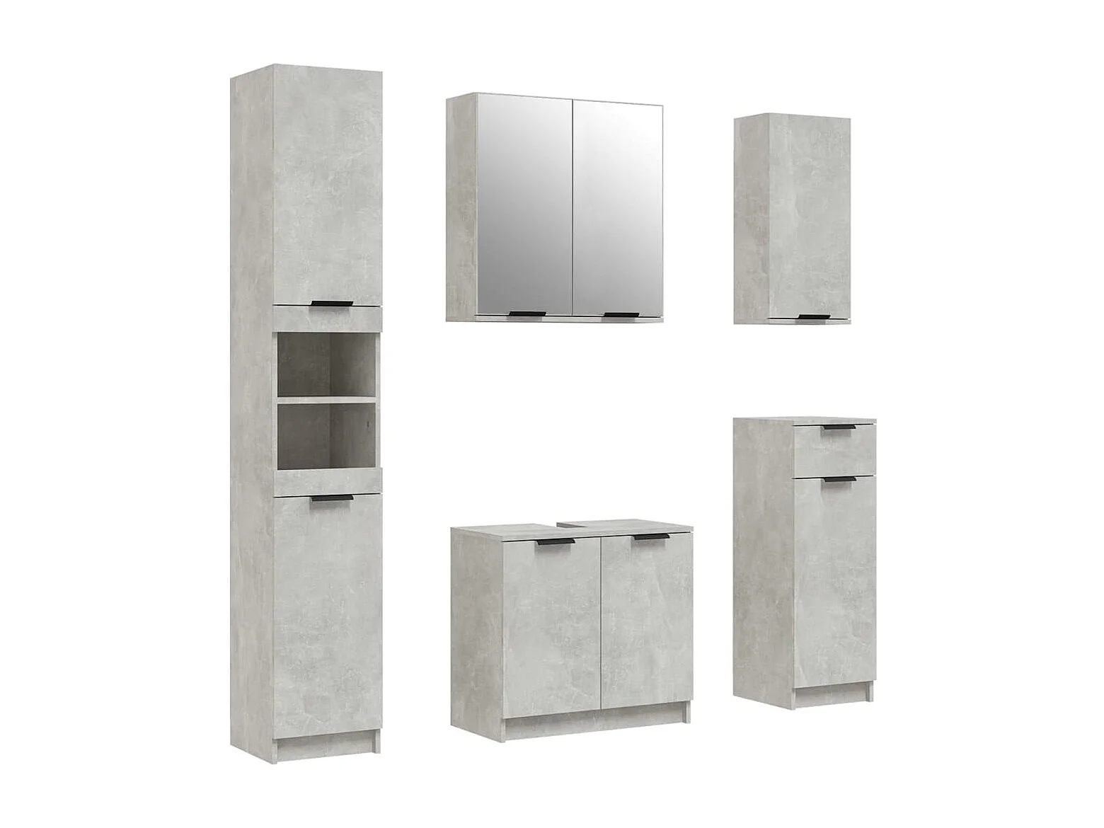Badezimmermöbel 5 Stück Betongrau Holzwerkstoff