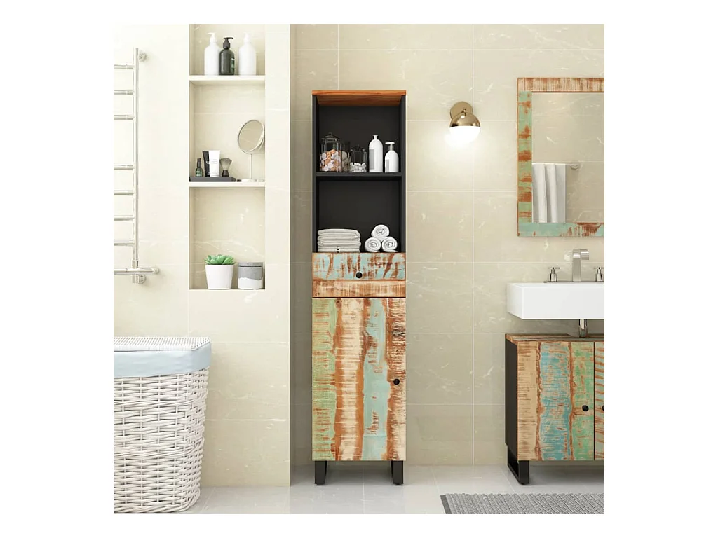 Badezimmerschrank 38x33x160 cm aus massivem Altholz