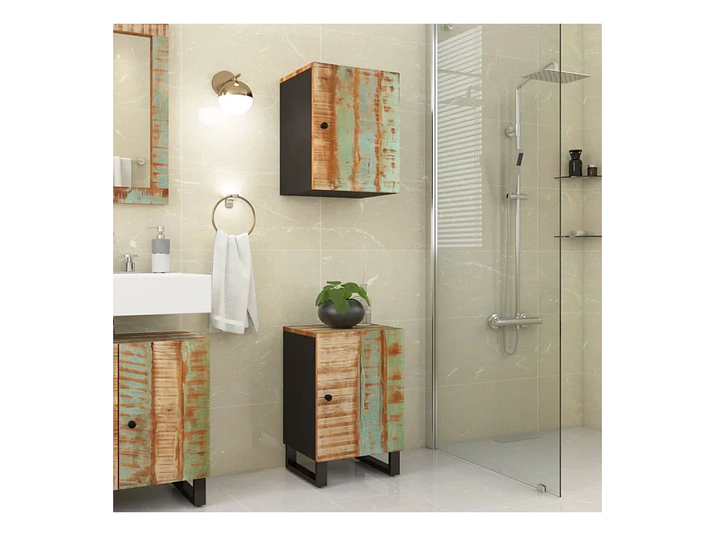 Wandmontierter Badezimmerschrank 38x33x48cm aus Altholz