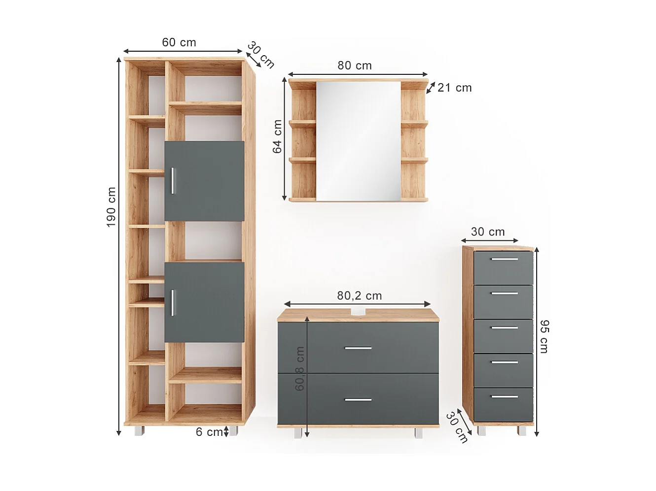 Badmöbel-Set anthrazit/goldkraft eiche 80.2x33x60.8 ilias