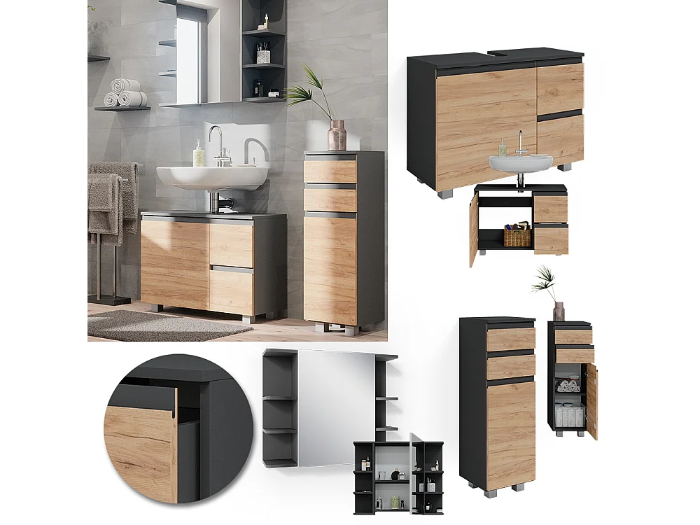 Badmöbel-Set anthrazit/sonoma 80x35x64 beatrice