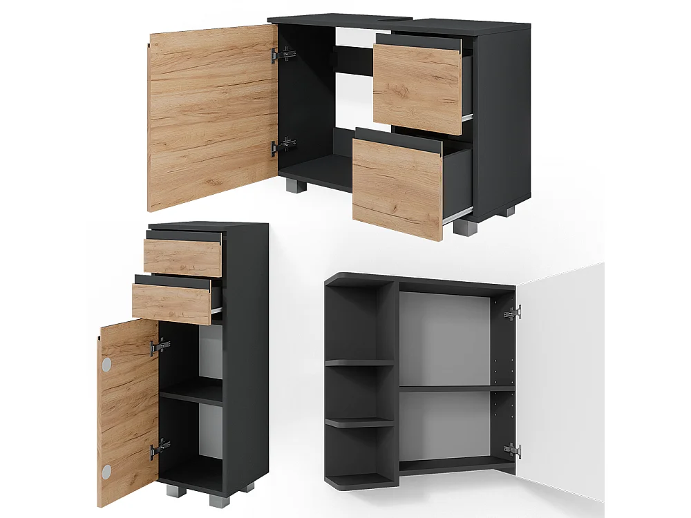 Badmöbel-Set anthrazit/bergeiche 80x30x62 leano