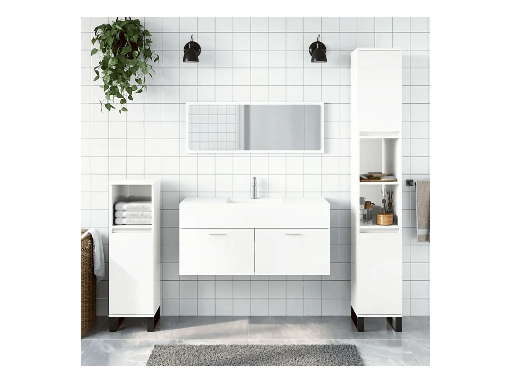 3-tlg. Badmöbel-Set Weiß Holzwerkstoff