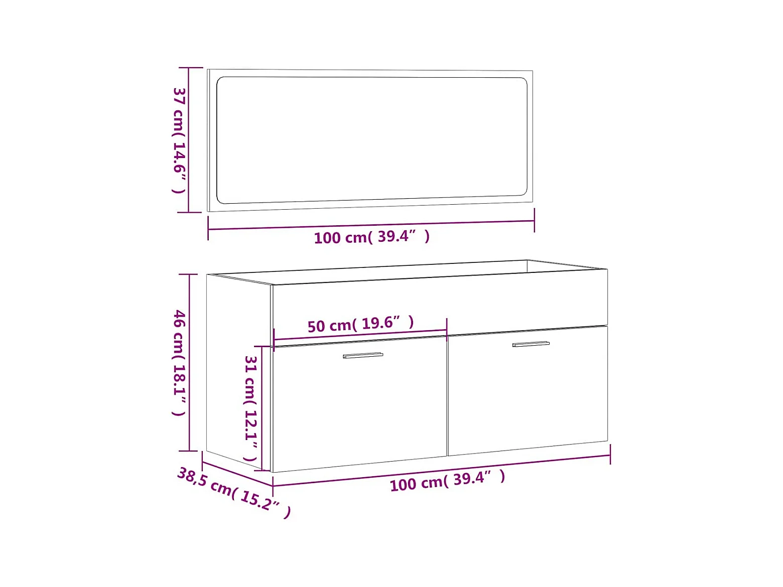 Badschrank mit Spiegel Weiß 41x38,5x48 cm