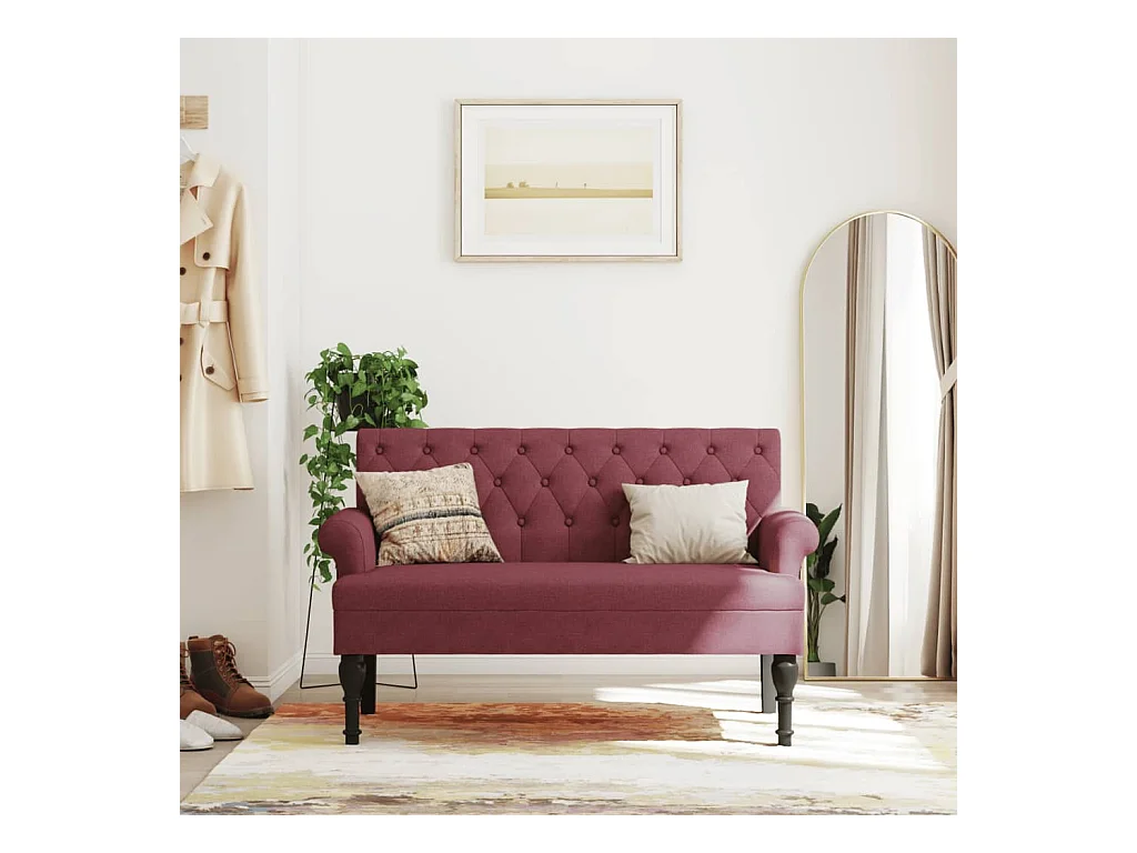 Bank mit bordeauxroter Rückenlehne 120x62x75,5 cm Stoff