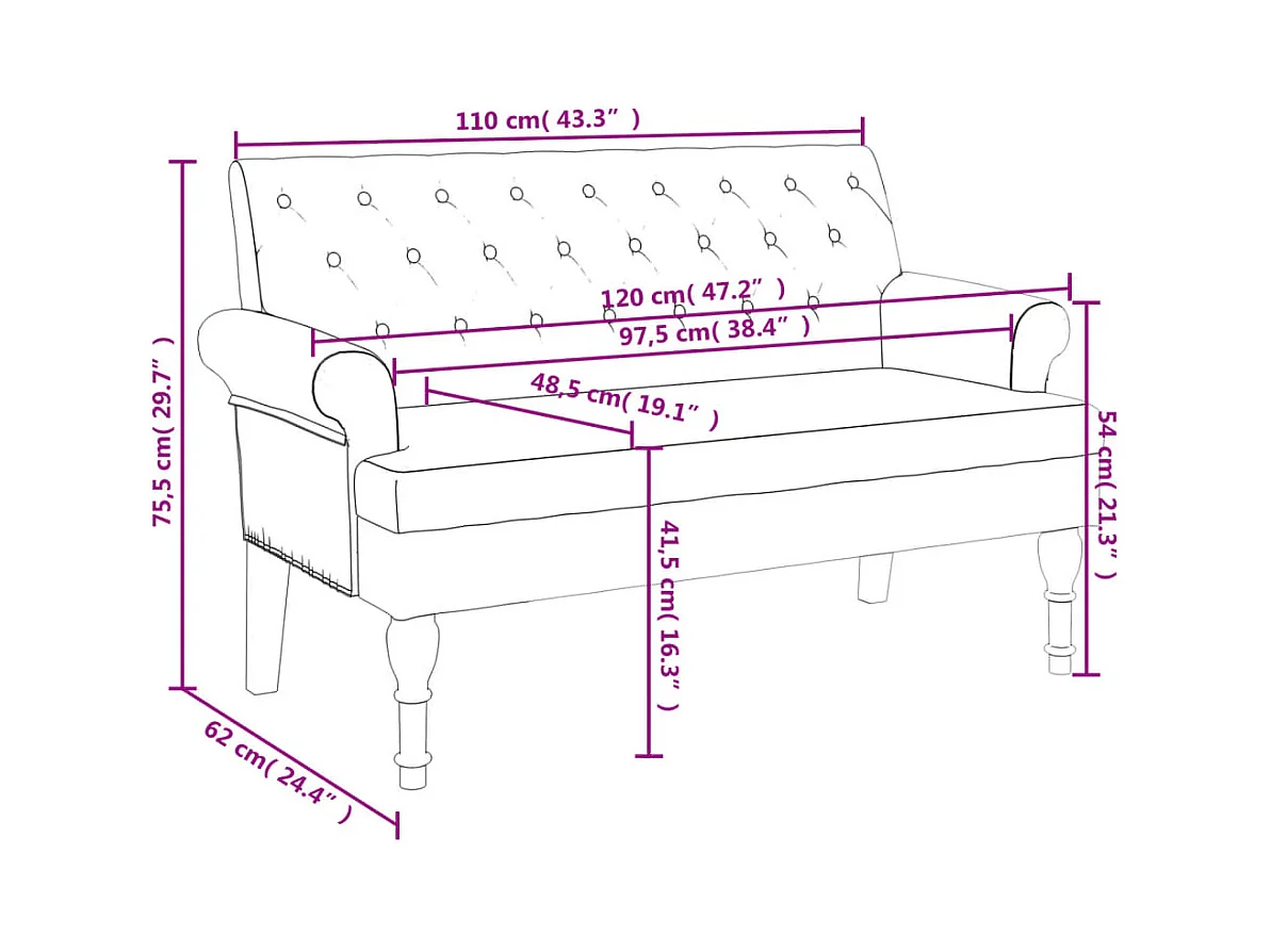 Bank mit weinroter Rückenlehne 119,5 x 64,5 x 75 cm, Samt