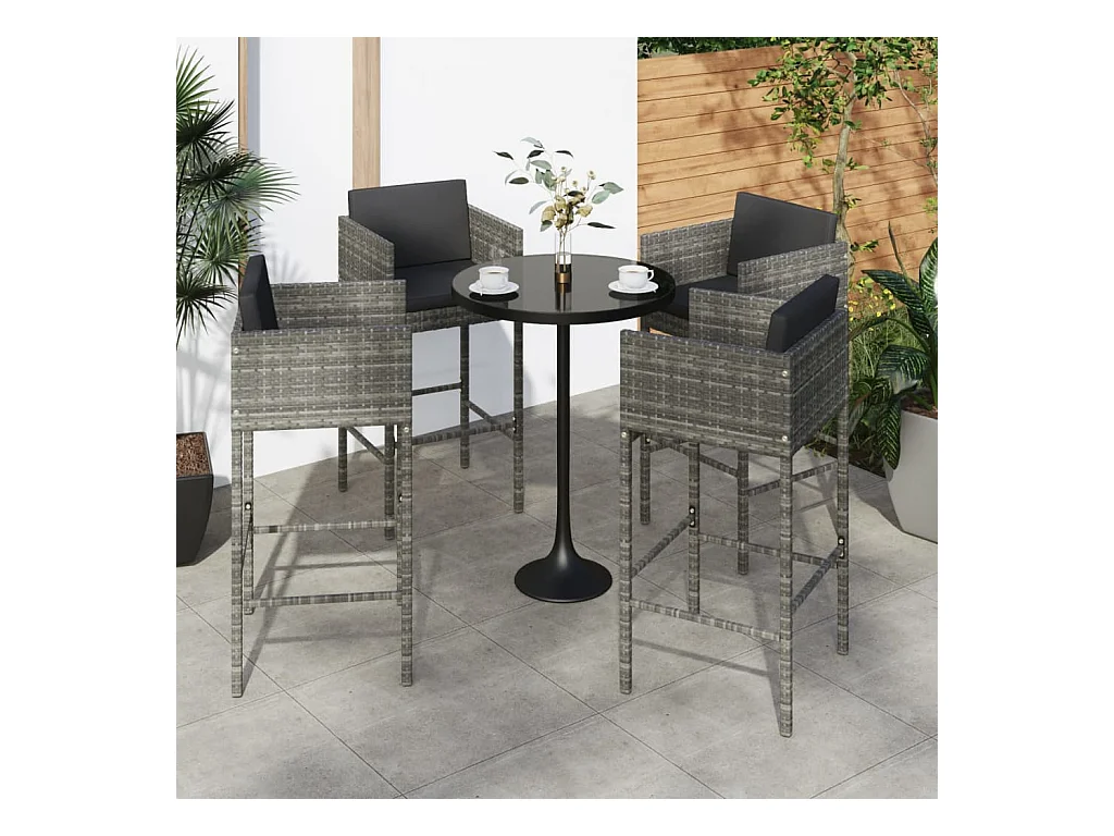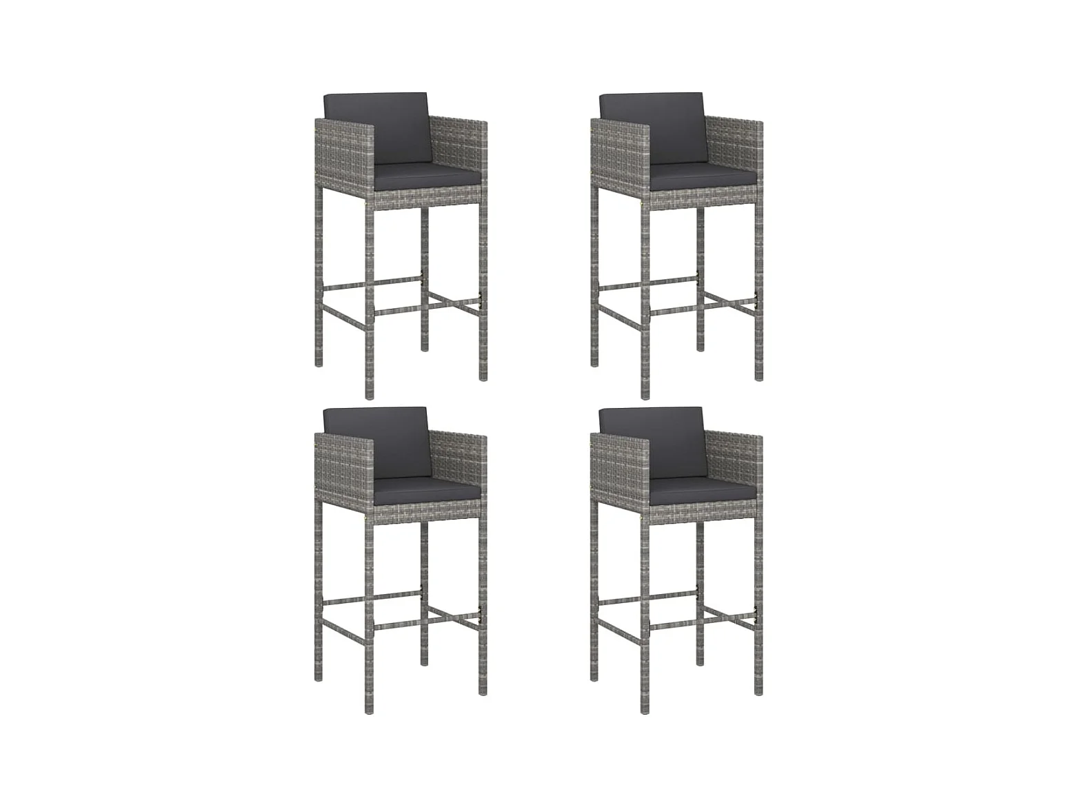 Barhocker im 4er-Set mit grauen Kissen aus geflochtenem Kunstharz