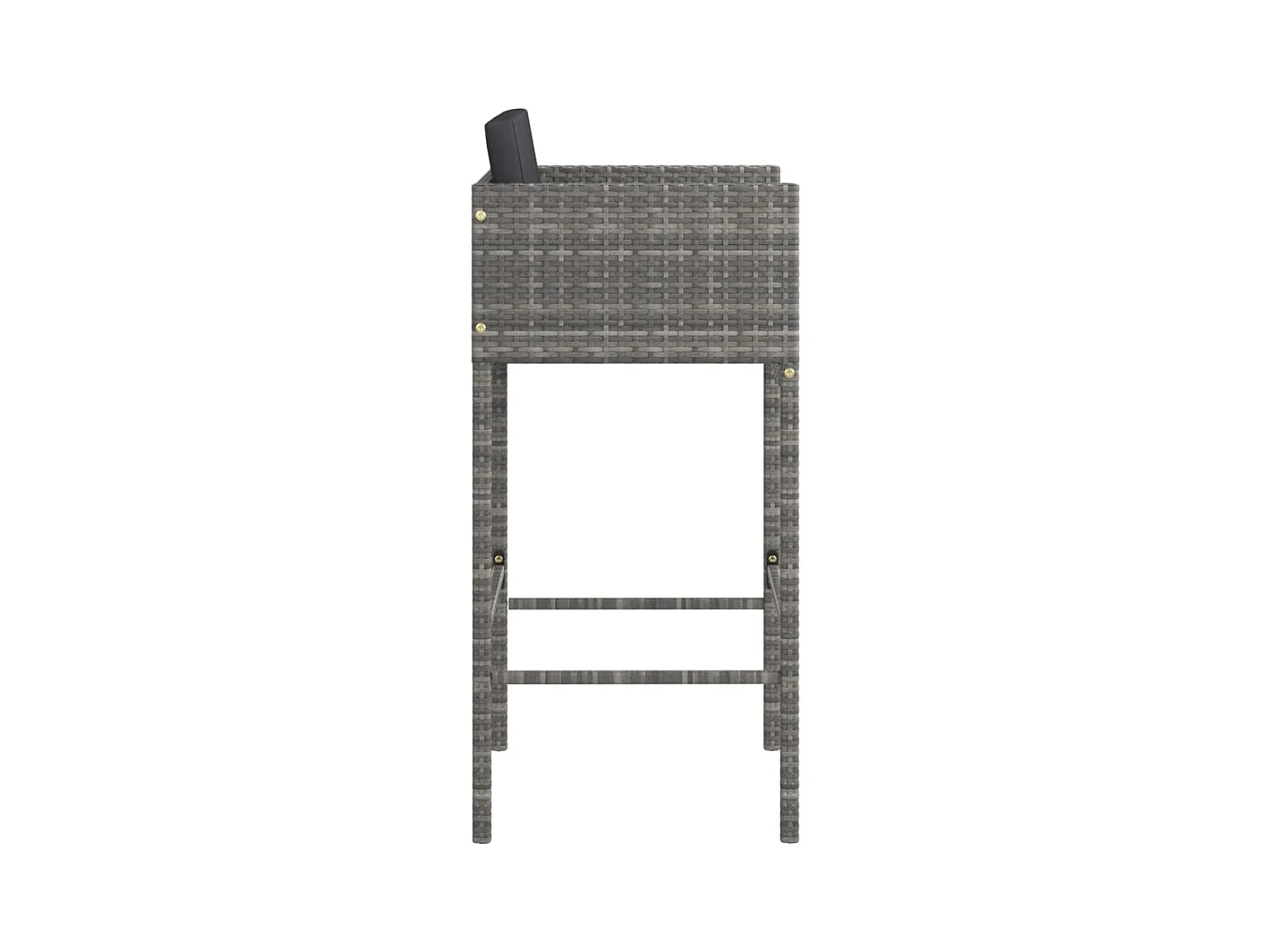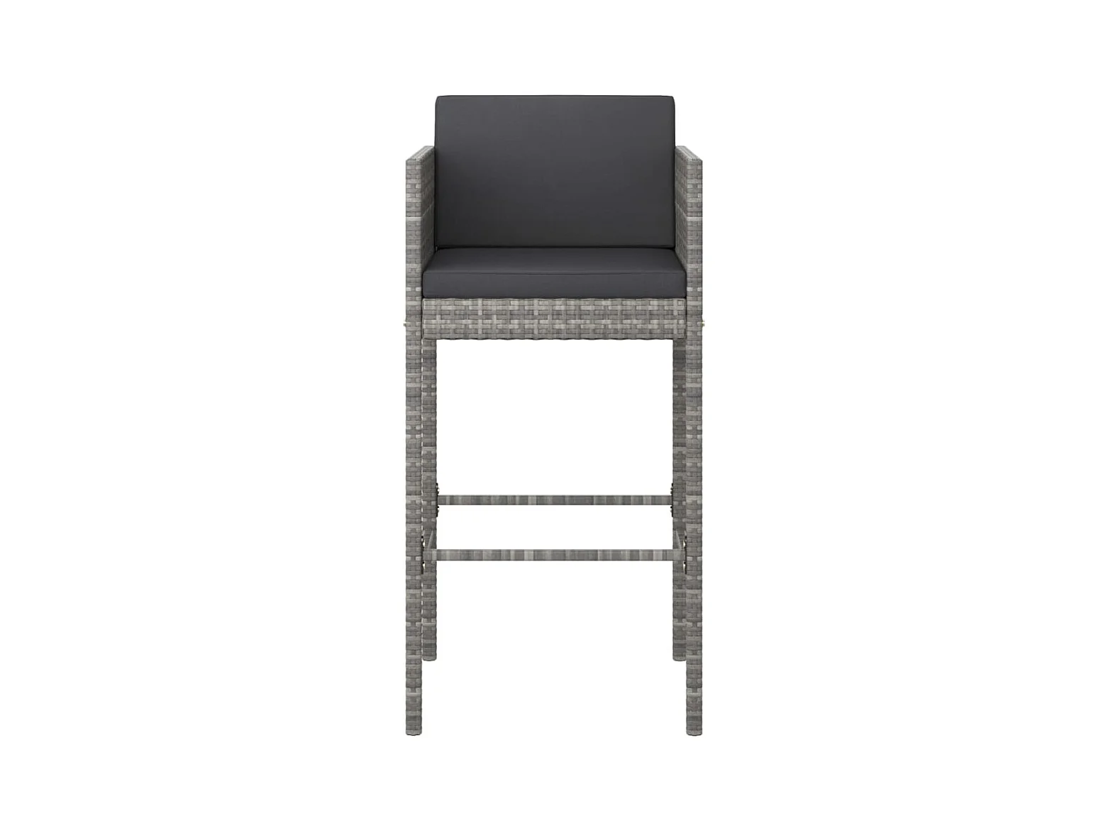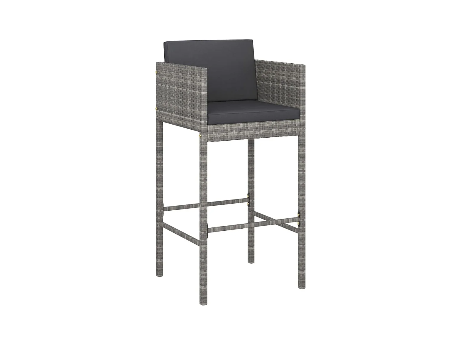 Barhocker im 2er-Set mit grauen Kissen aus geflochtenem Kunstharz