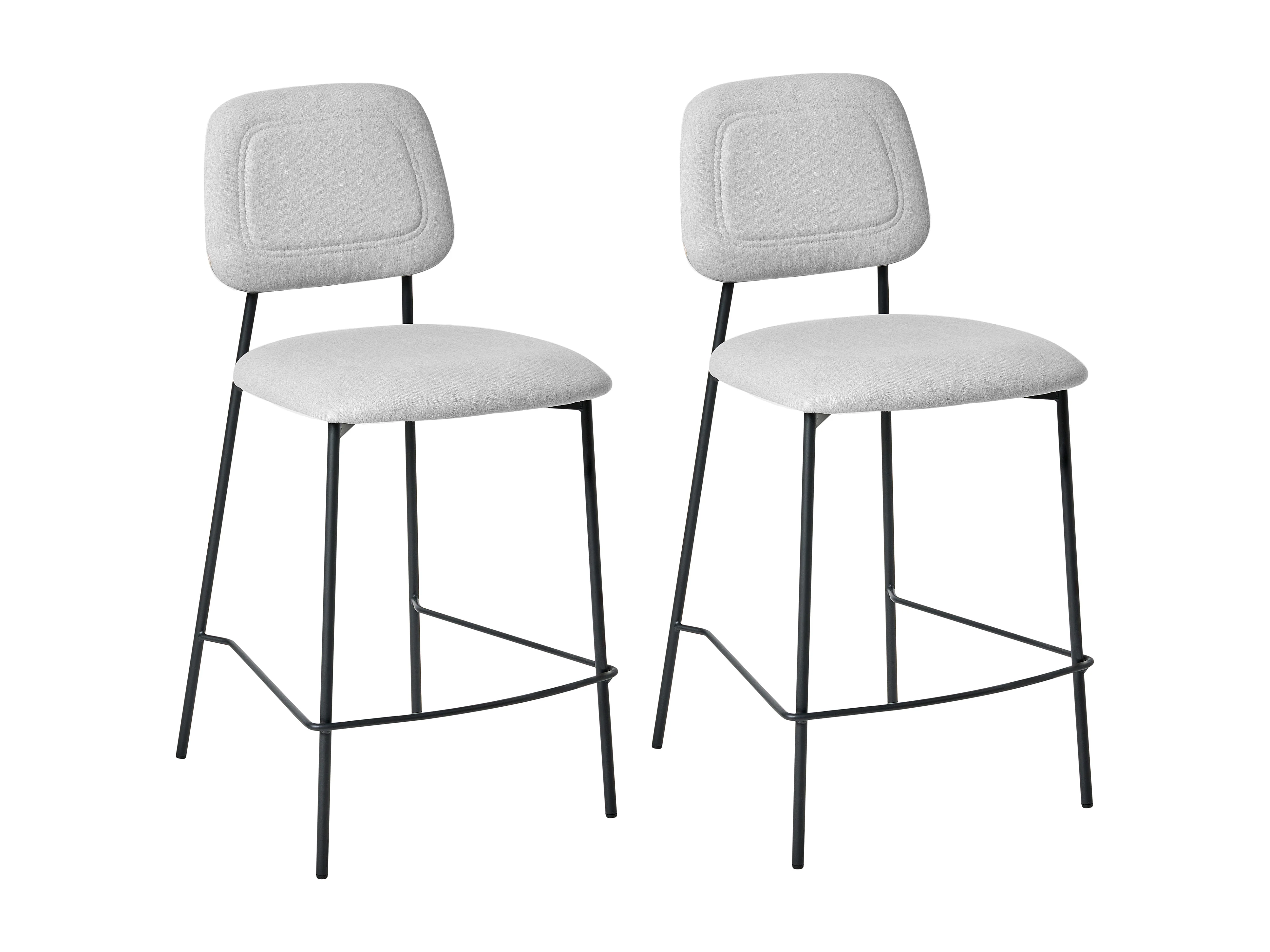 Barstuhl 2er Set Leinenoptik hell grau mit hoher Lehne Fußstütze modern Duette