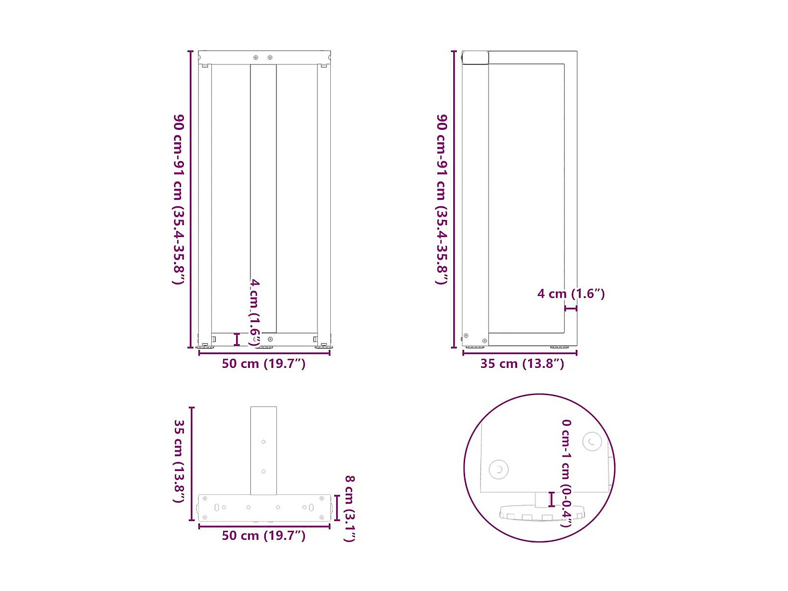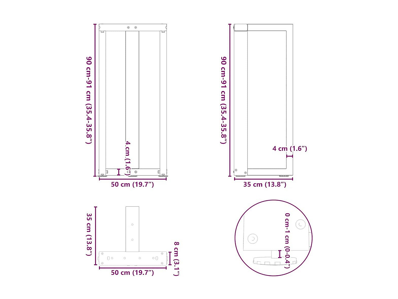 Bartischbeine T-Form 2 Stk. Schwarz 50x35x(90-91) cm Stahl