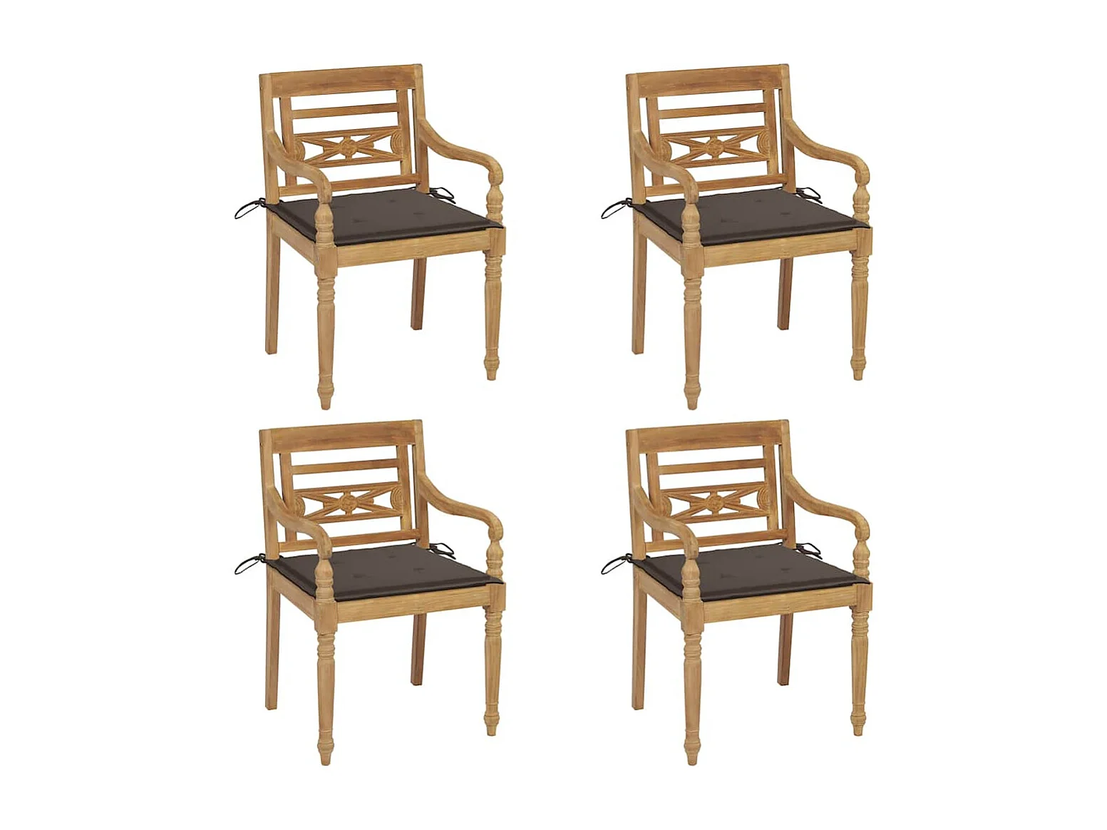 Batavia Stühle mit Kissen 4er Set Massivholz Teak