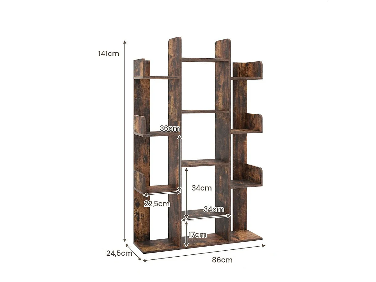 Baumförmiges Bücherregal mit 13 Offenen Fächern Ablageregal Holzregal 86 x 24,5 x 141 cm Braun