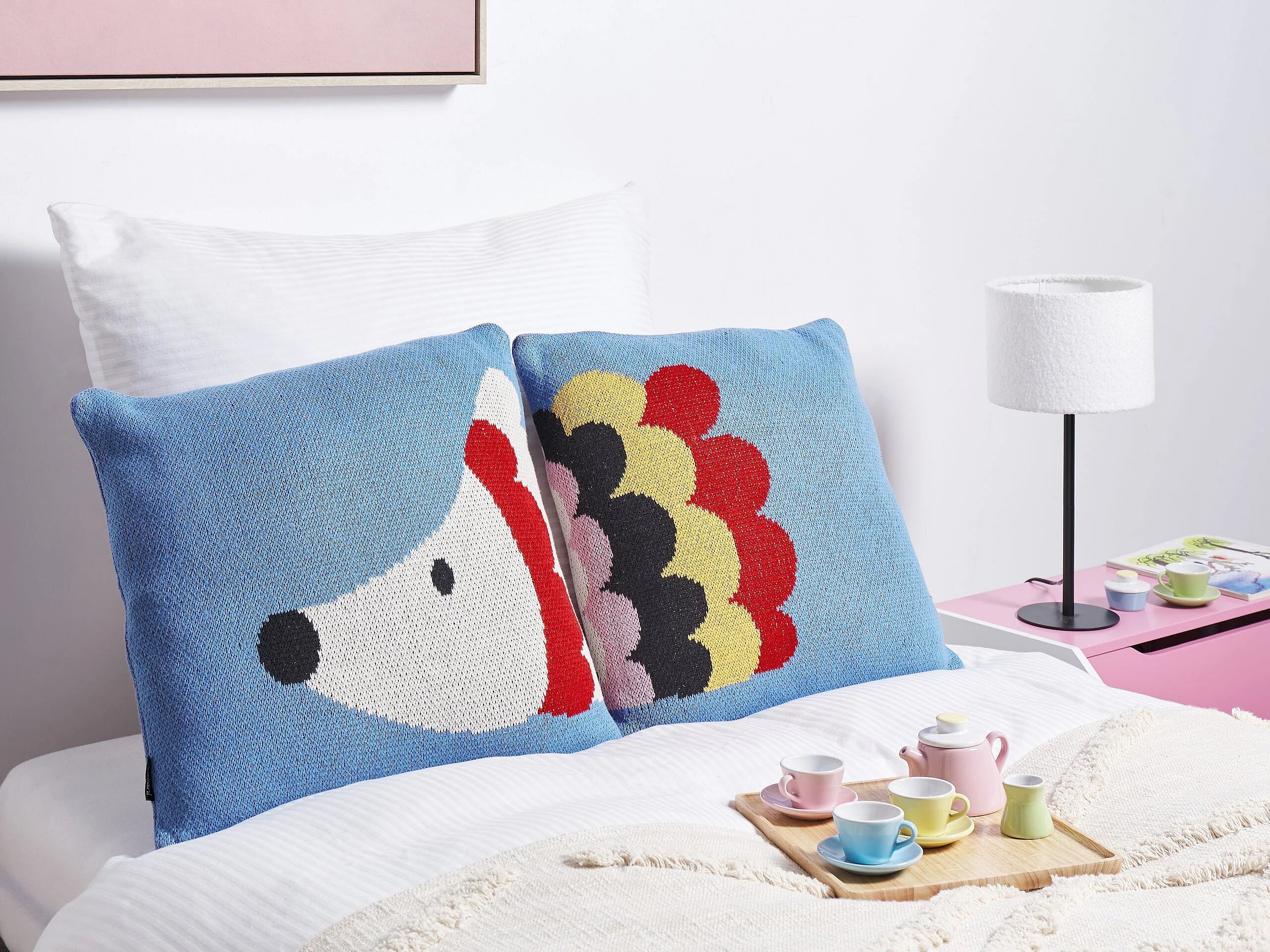 Dekokissen 2er Set Baumwolle blau 45x45 cm Tiermotiv Igel für Kinder Pashot