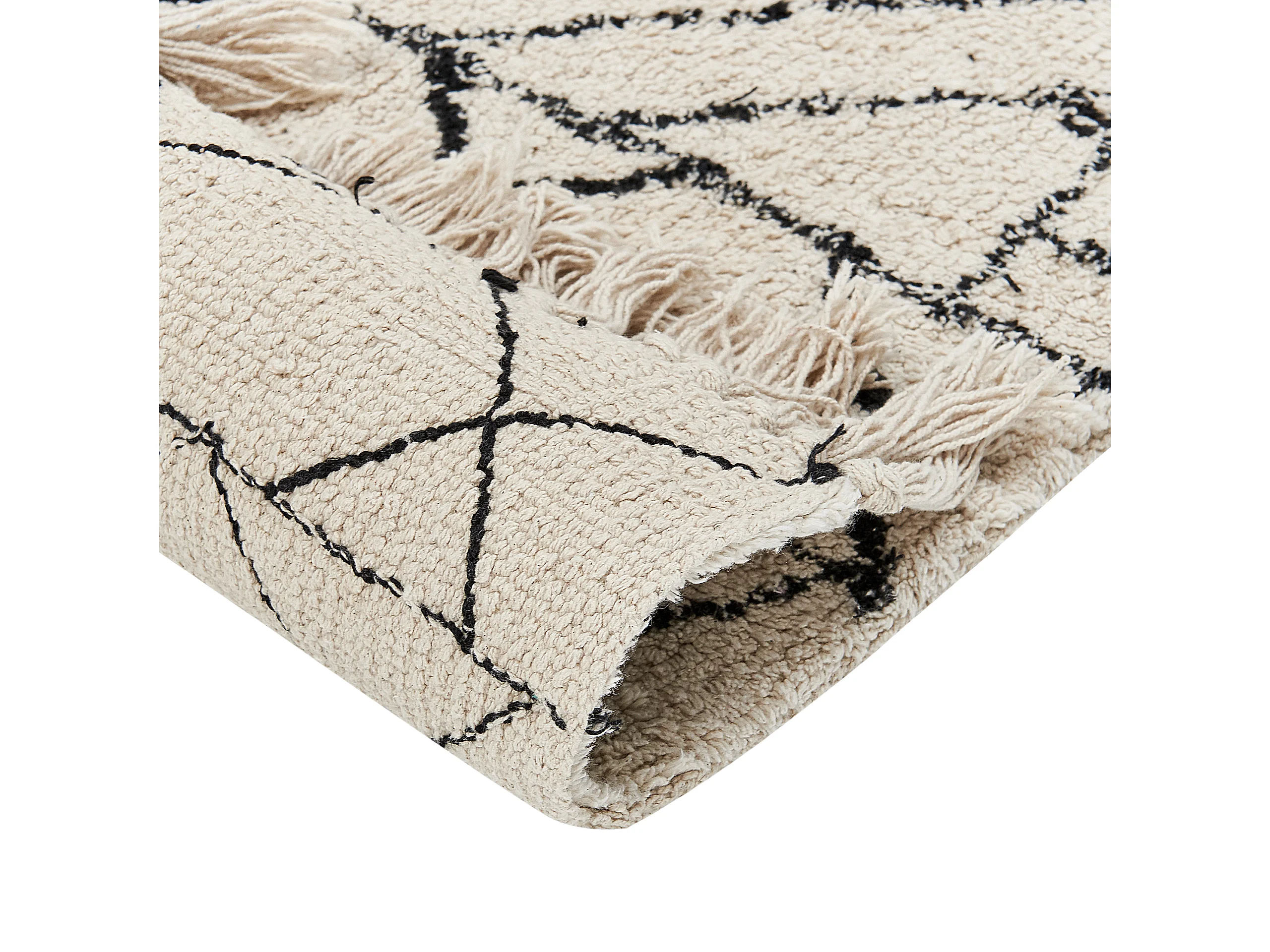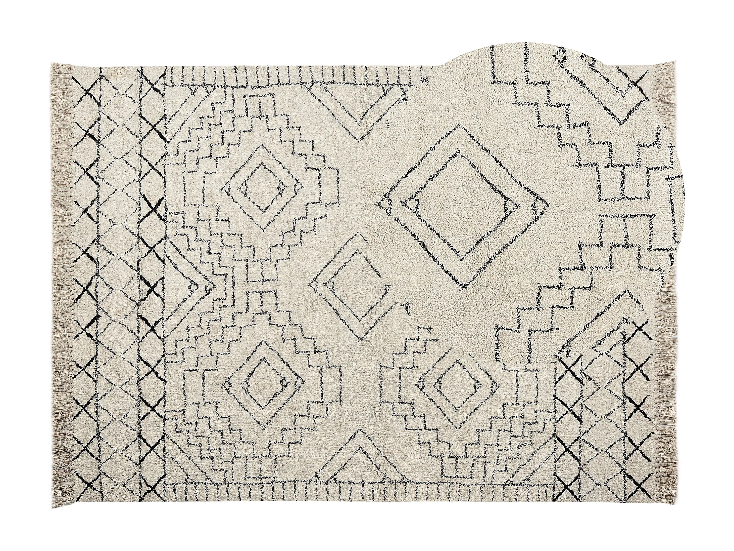 Baumwollteppich Beige und Schwarz Aztekenmuster Modern Vintage 160 x 230 cm Zeyne