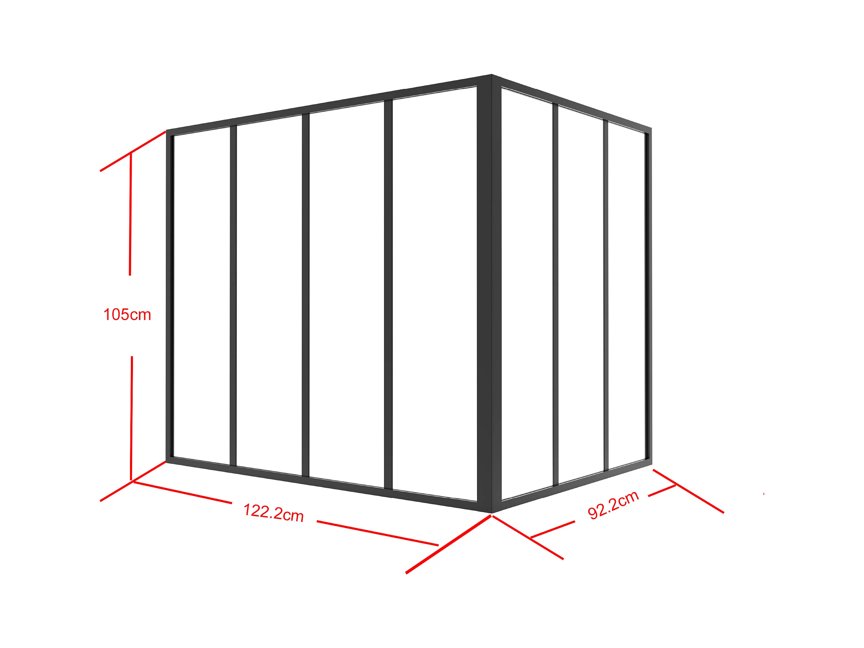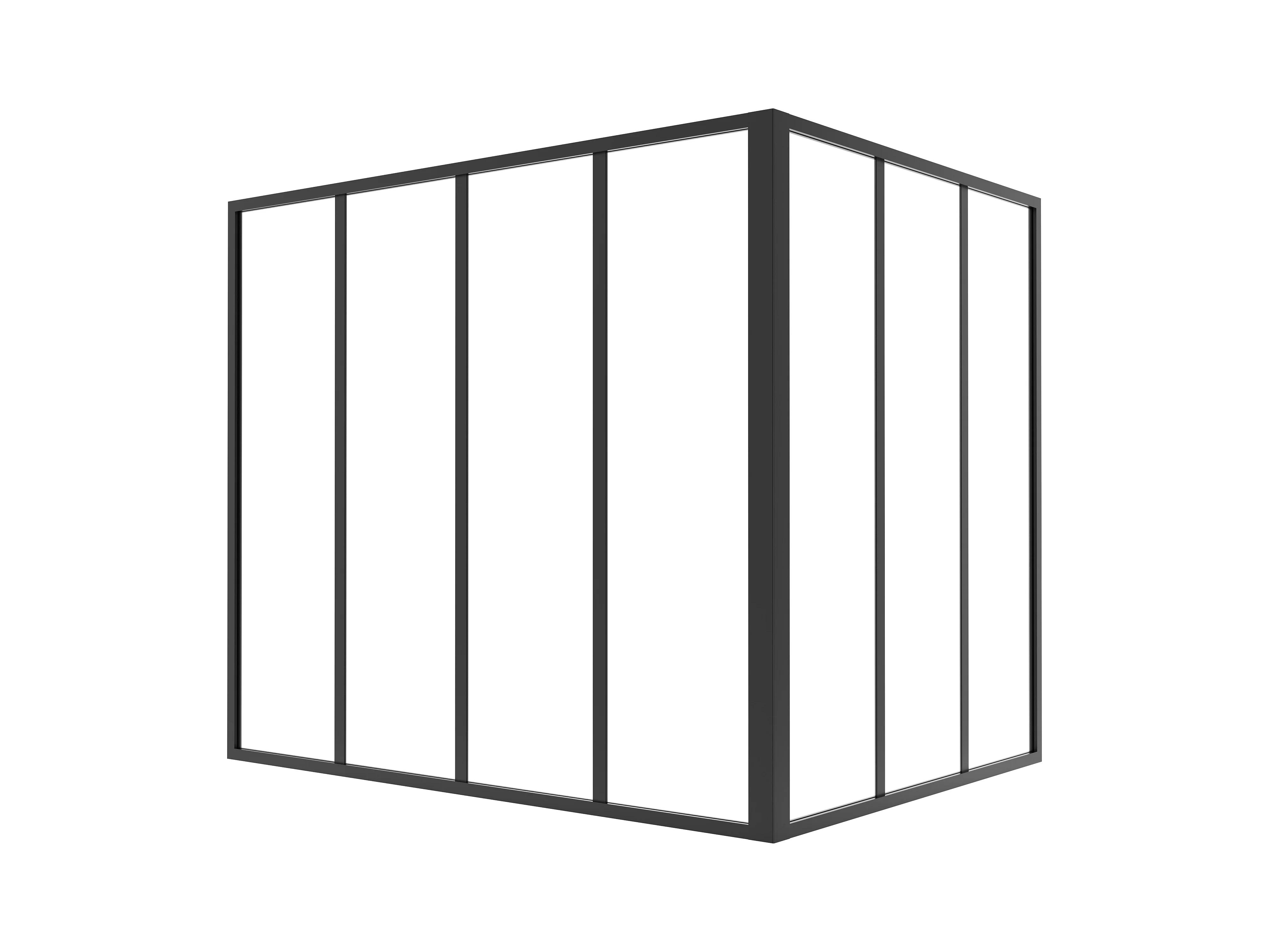 Glaswand Ecklösung - 120 x 90 x 105 cm - thermolackiertes Aluminium - Schwarz - BAYVIEW
