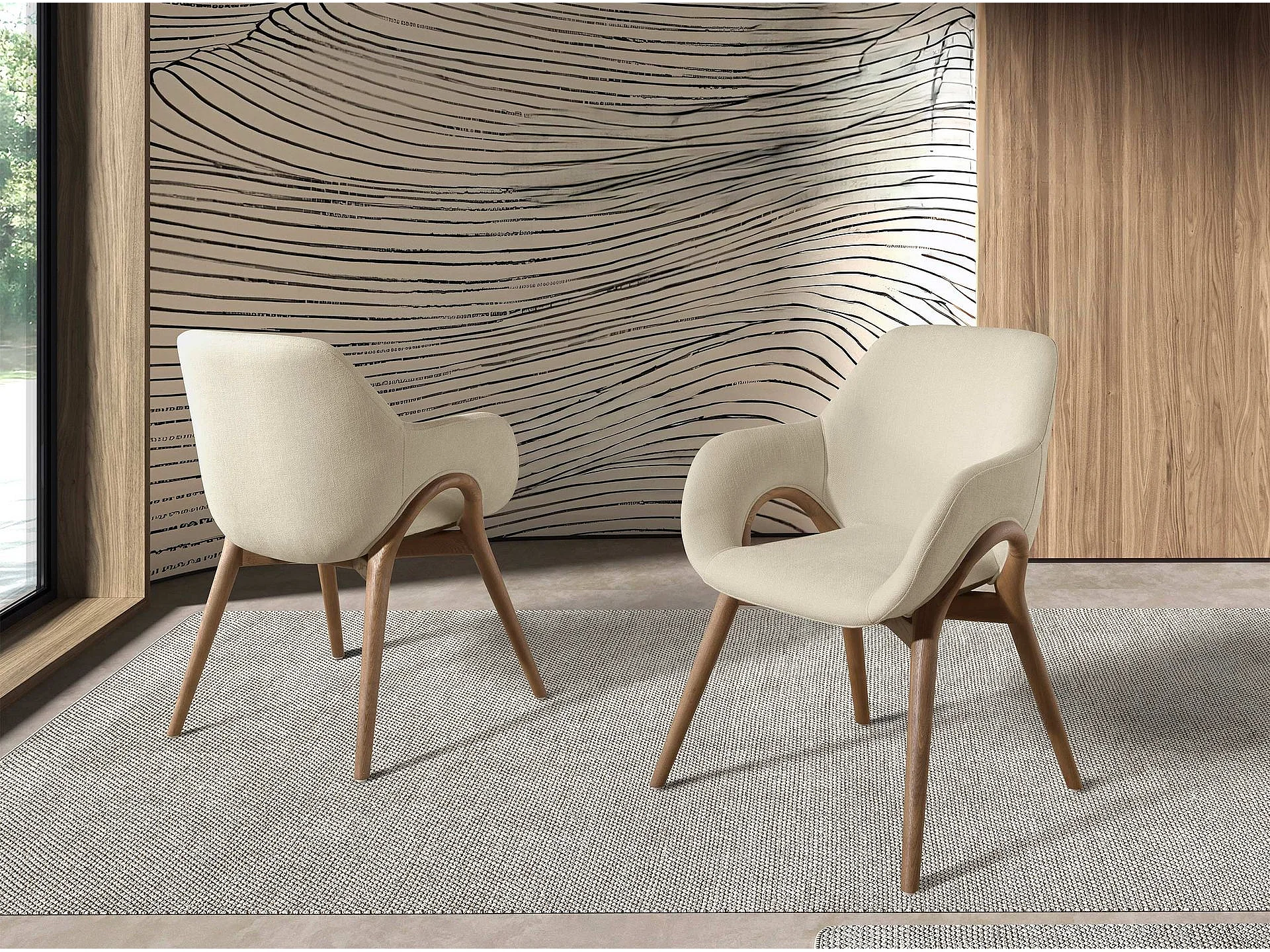 Beigefarbener Stoffstuhl