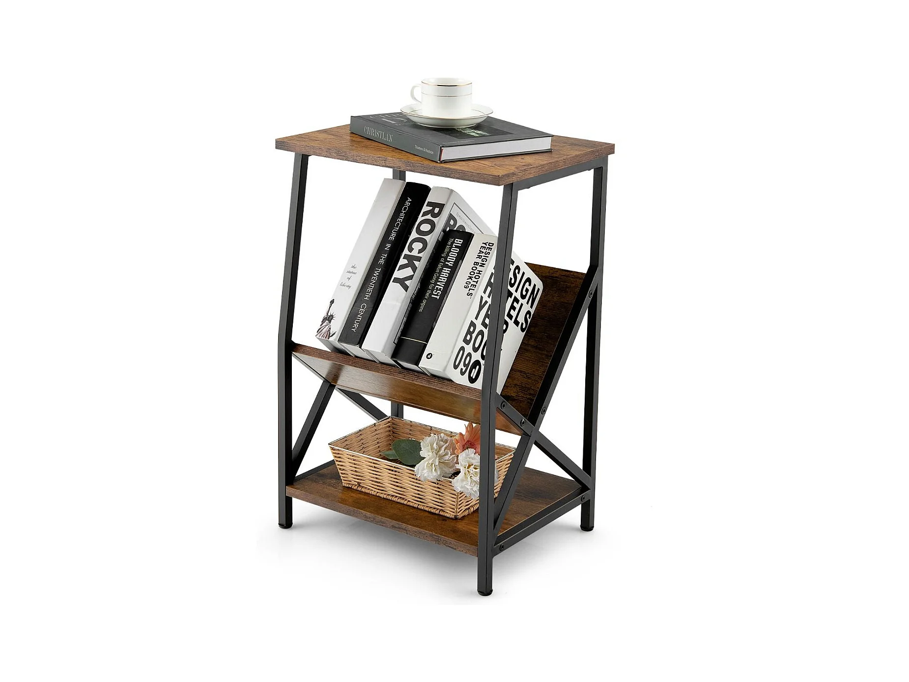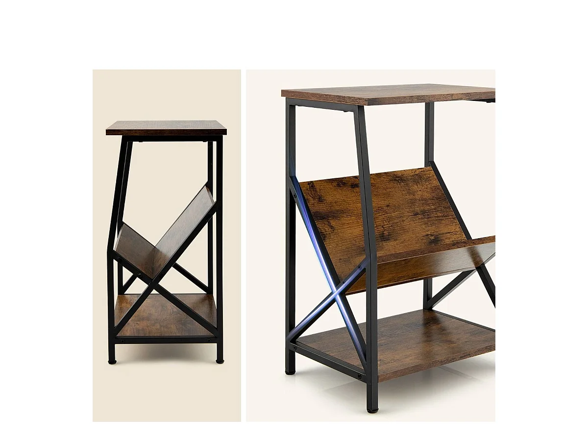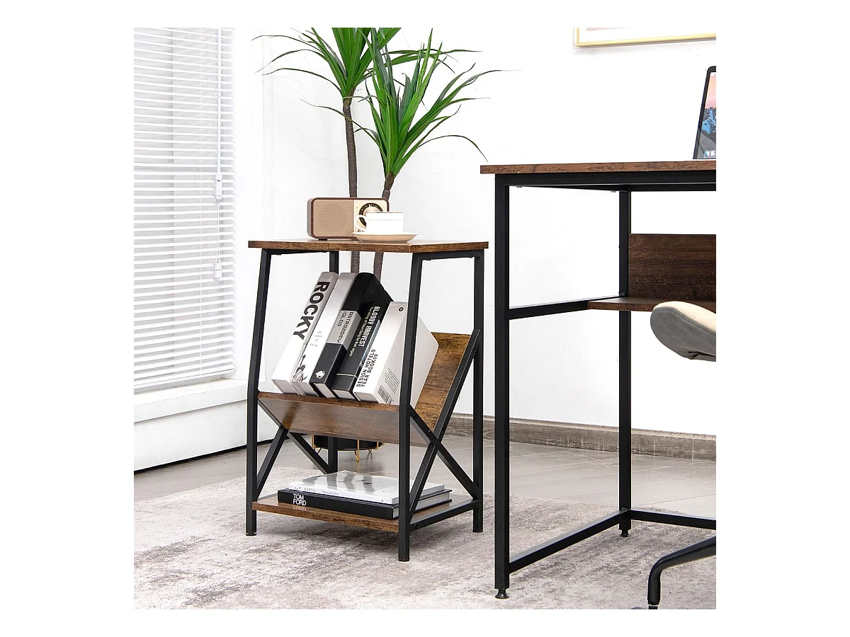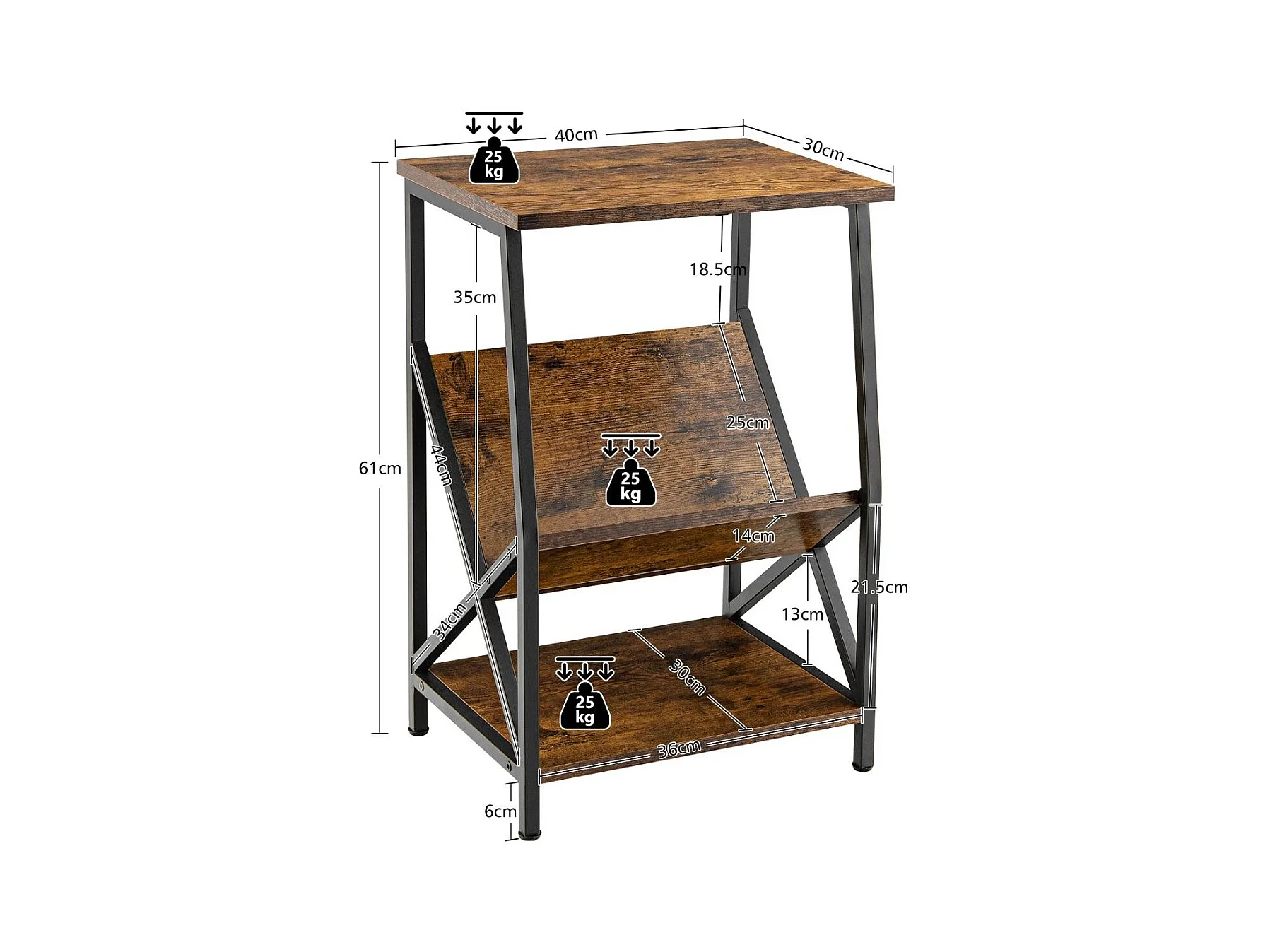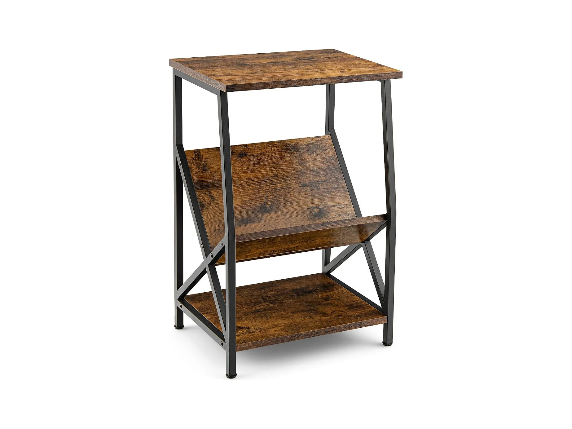 Beistelltisch 3-stufiger mit V-förmigem Zeitschriftenhalter 40 x 30 x 61 cm Rustikales Braun