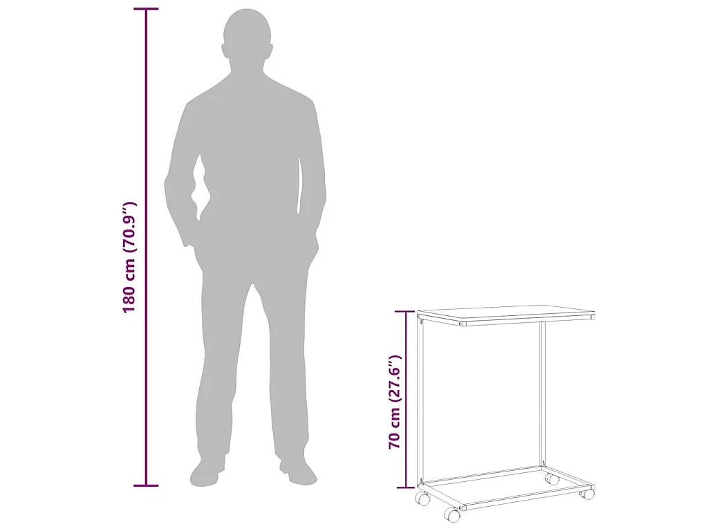 Beistelltisch mit Rollen Schwarz 55x35x70 cm Holzwerkstoff