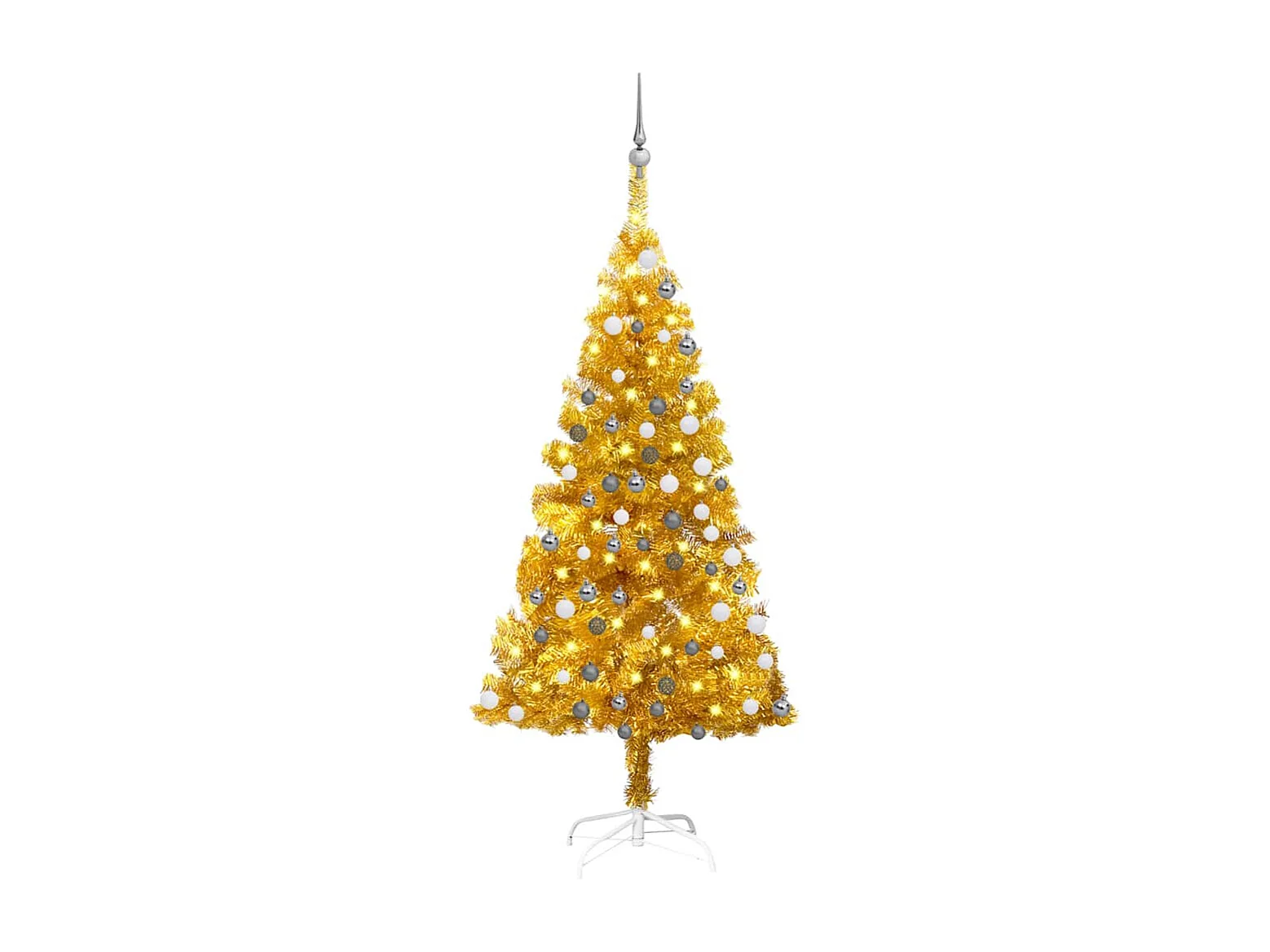 Beleuchteter künstlicher Weihnachtsbaum mit goldenen Kugeln 150 cm PET
