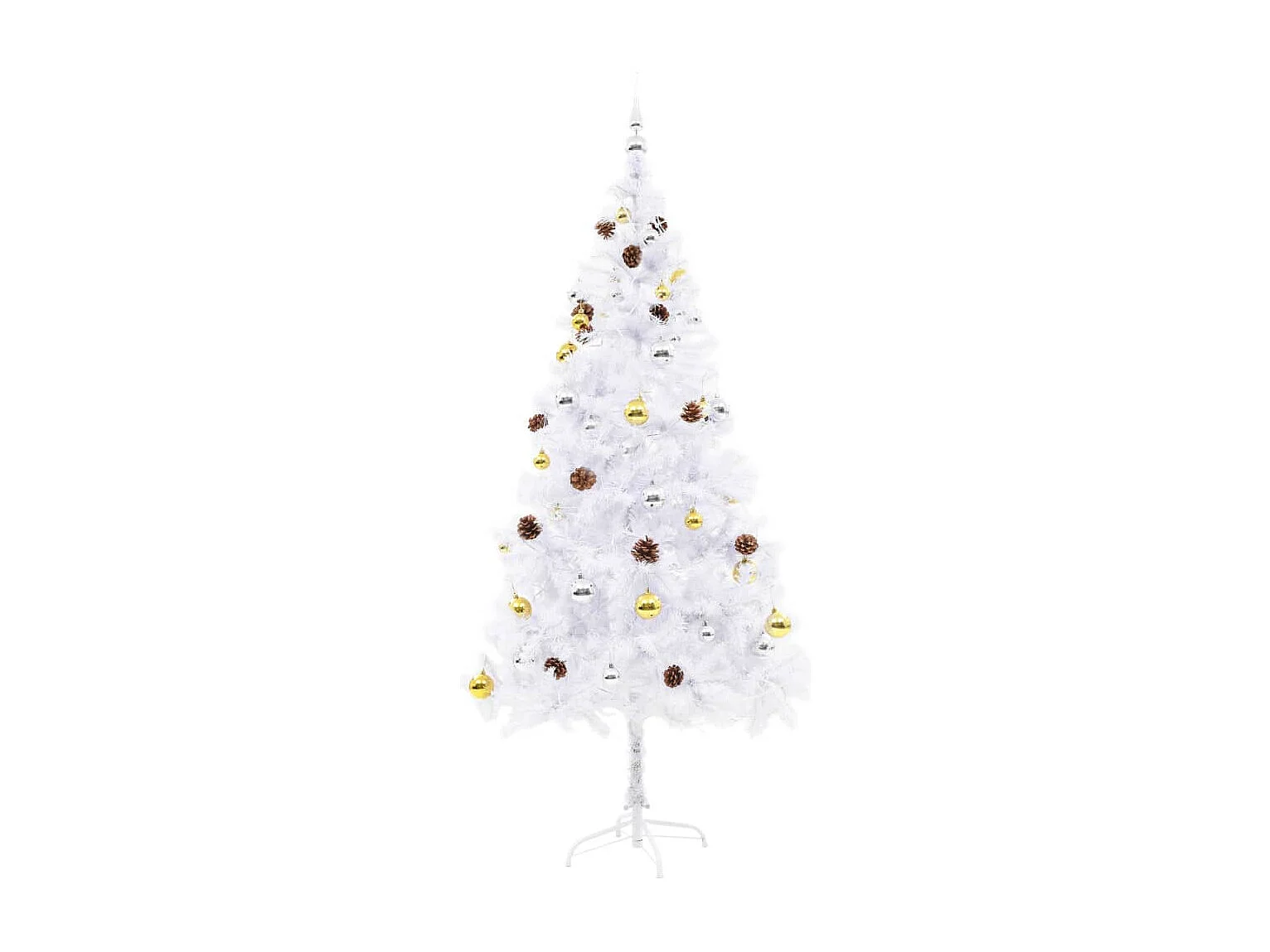 Beleuchteter künstlicher Weihnachtsbaum mit weißen Kugeln 180 cm