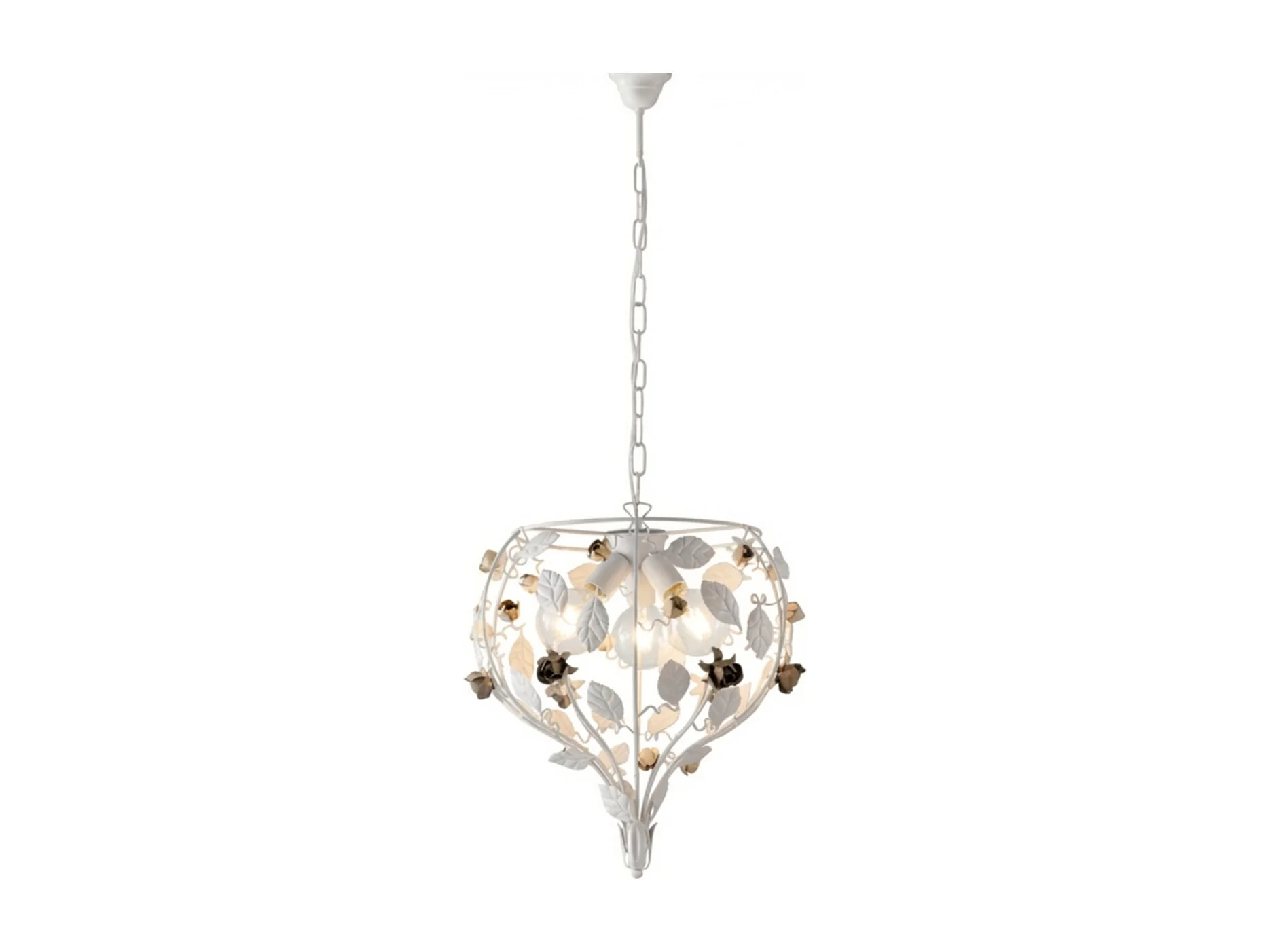 Bonetti Illumina - Bella - Shabby-Kronleuchter aus weiß lackiertem Eisen, 3 Lichter 113 - Ø49 - BL196-3-BCO