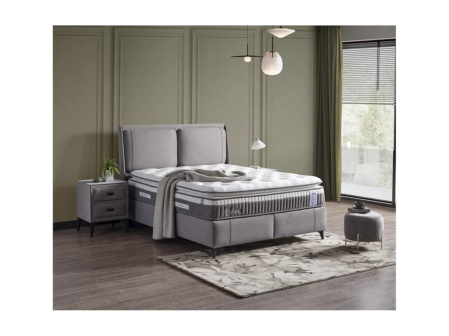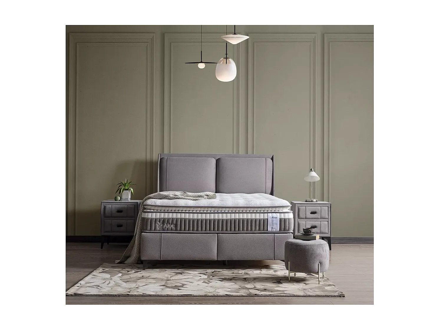 Bett Aloe/160 x 200/Stoffbezug/Grau