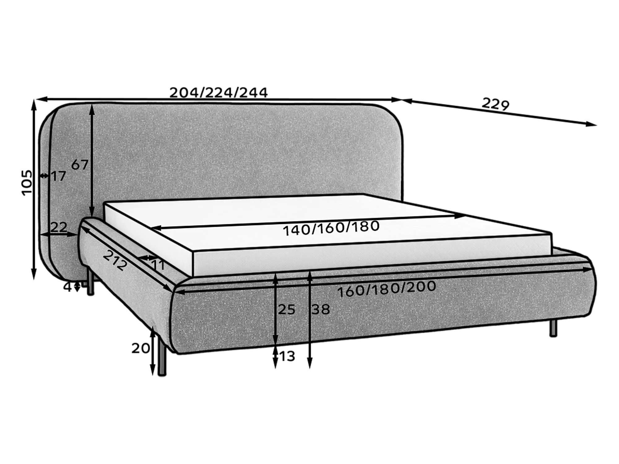 Bett Croft S (140x200)/StoffbezugBordeaux