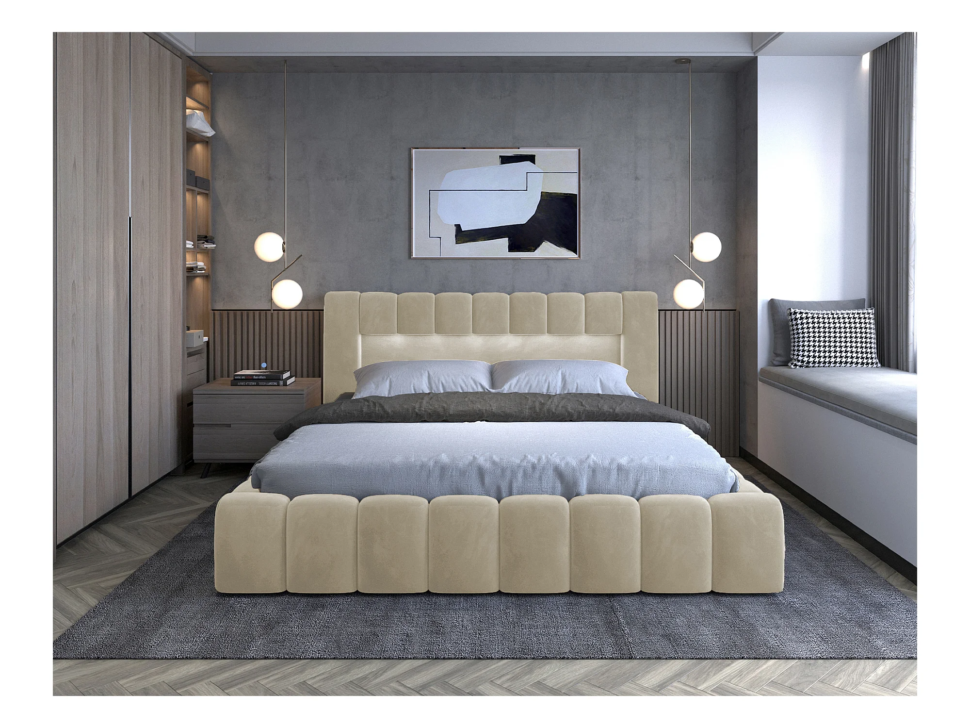 Bett Hero L-180x200/Stoffbezug/Beige