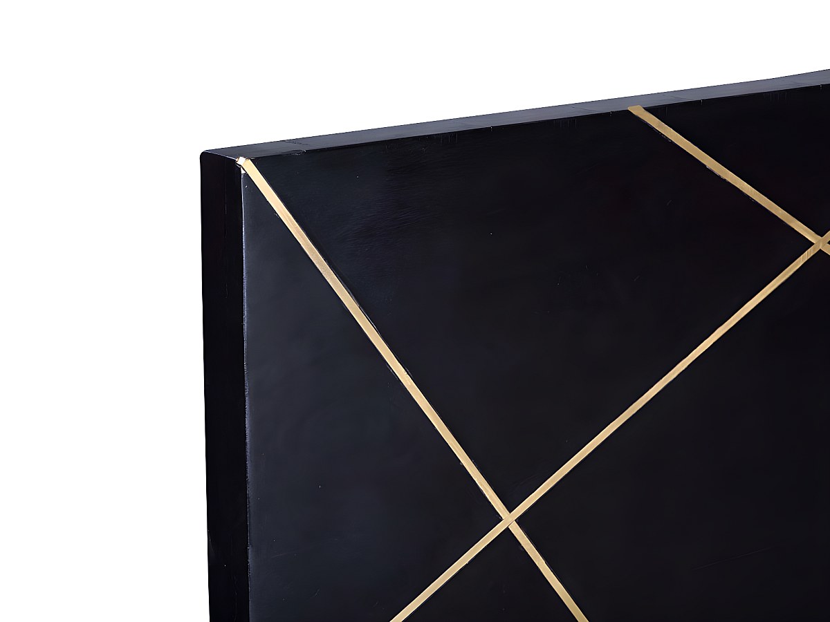 Bett-Kopfteil Art Déco MANGAIA - 160 cm - Mangoholz - Schwarz & Goldfarben